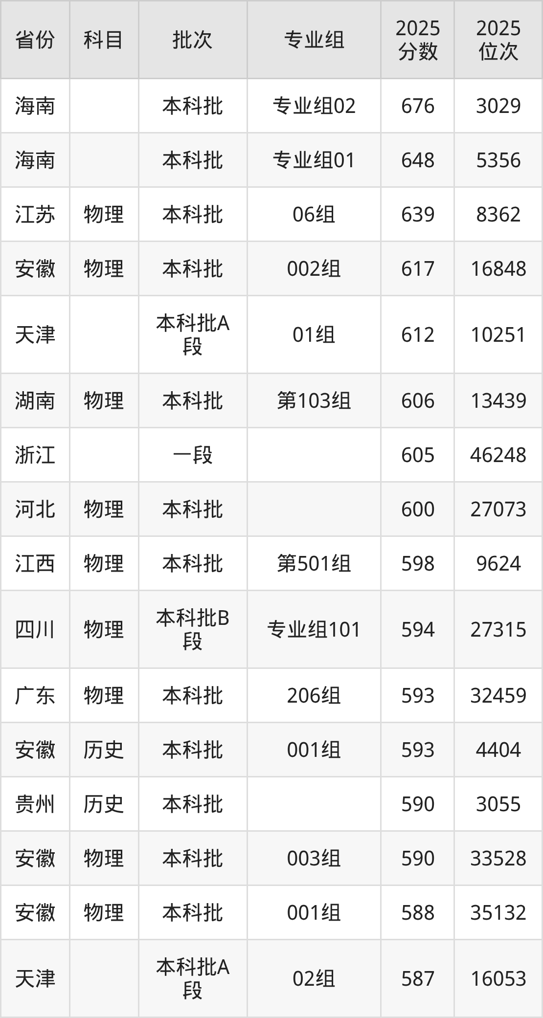 下面是2025年南京医科大学在全国各省录取最低分数据及位次,各位考生也可作为一个参考。