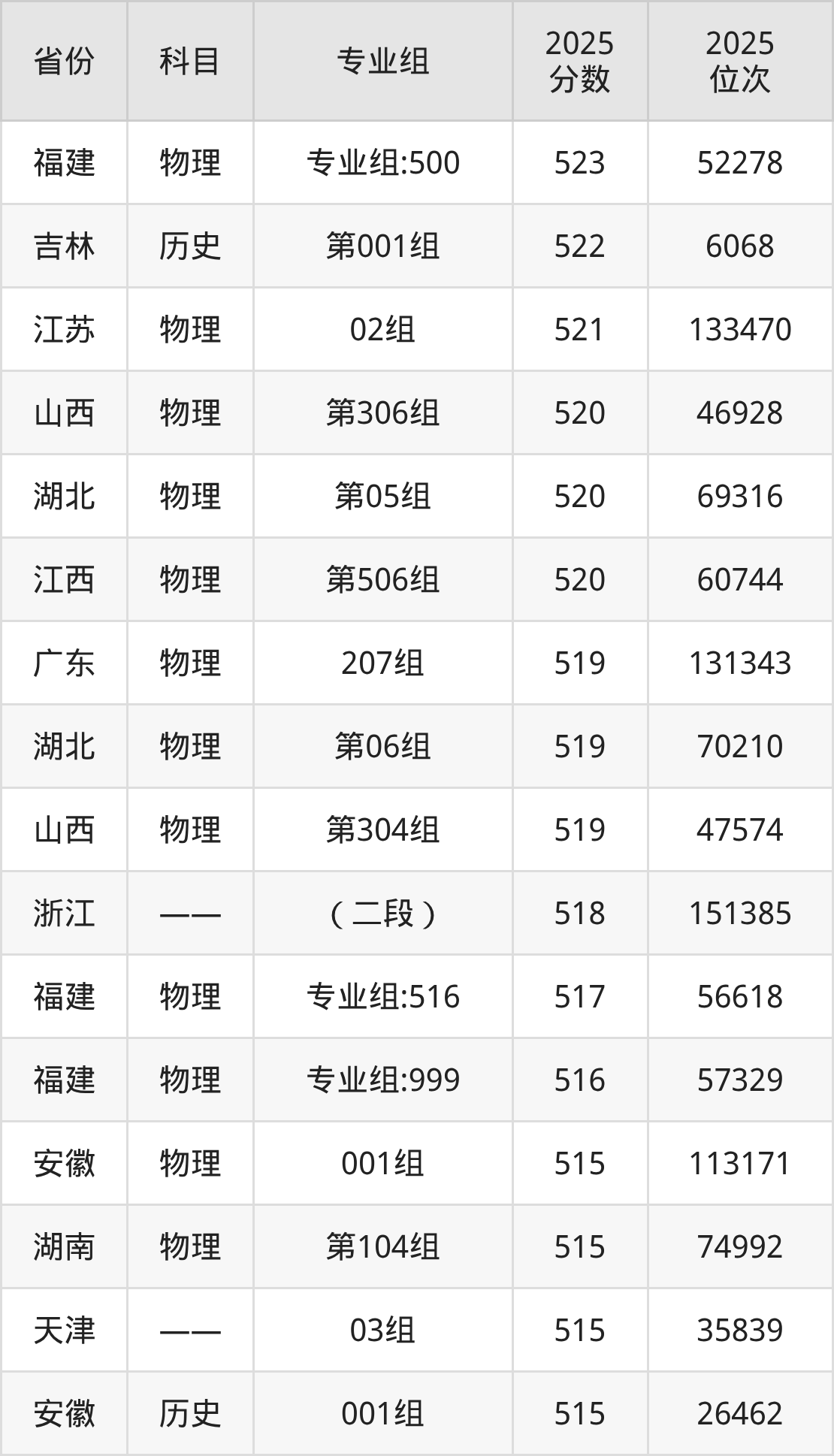 参考2025年山东省高考招录数据,按照分数线从高到低依次为大家展示广西科技大学各个专业录取分数线。