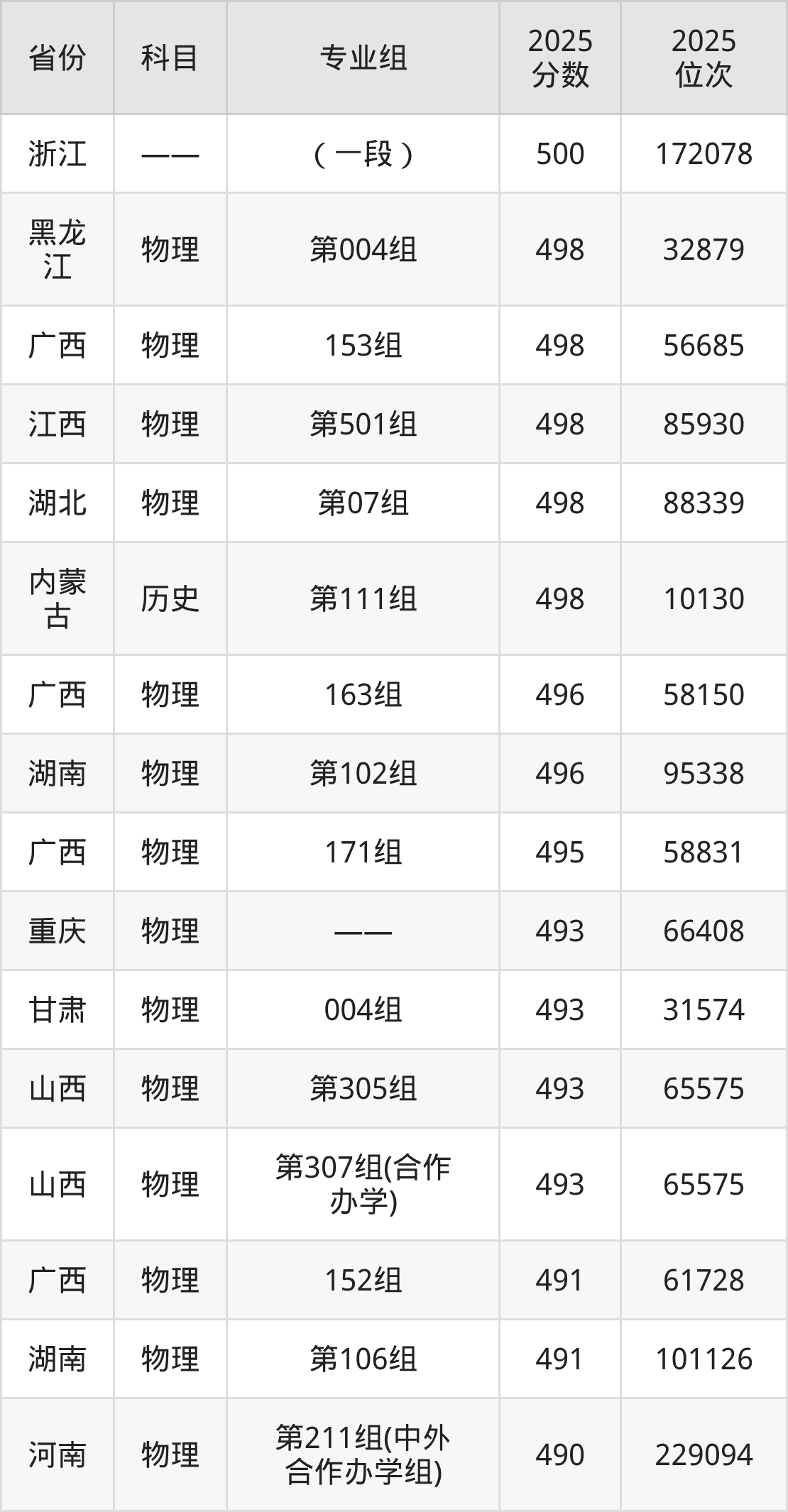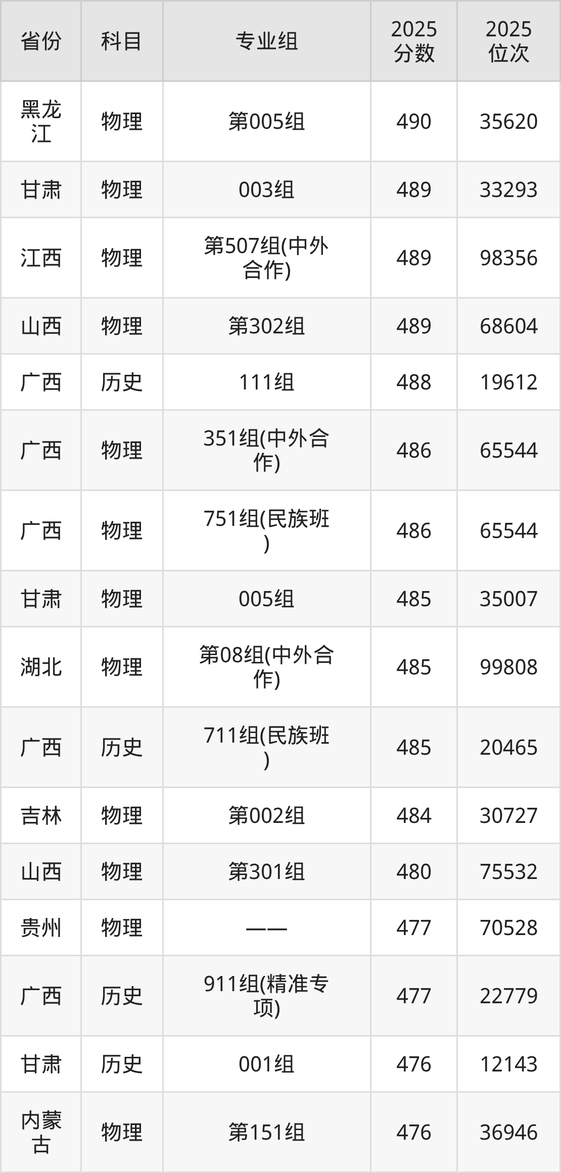 下面是2025年广西科技大学在全国各省录取最低分数据及位次,各位考生也可作为一个参考。