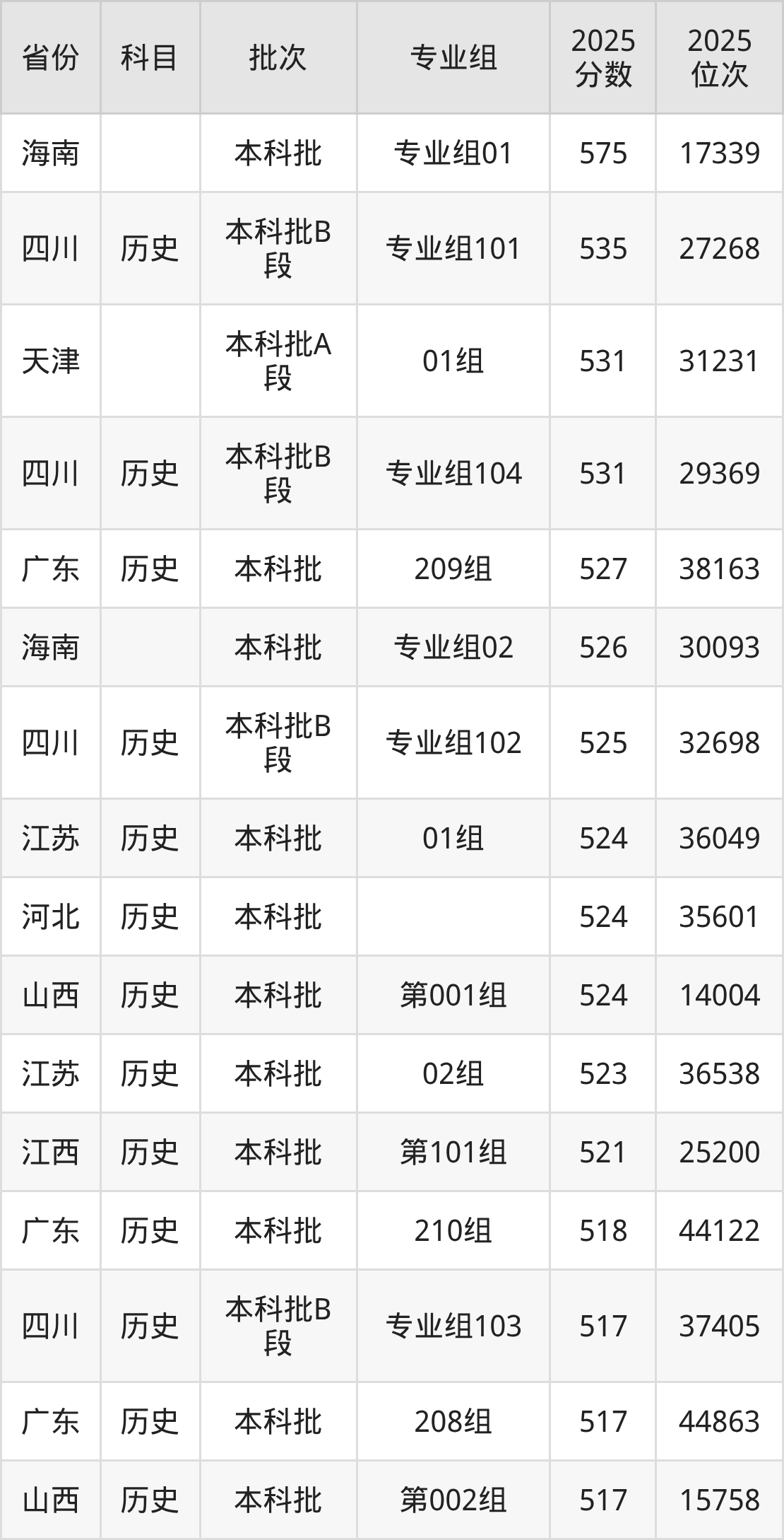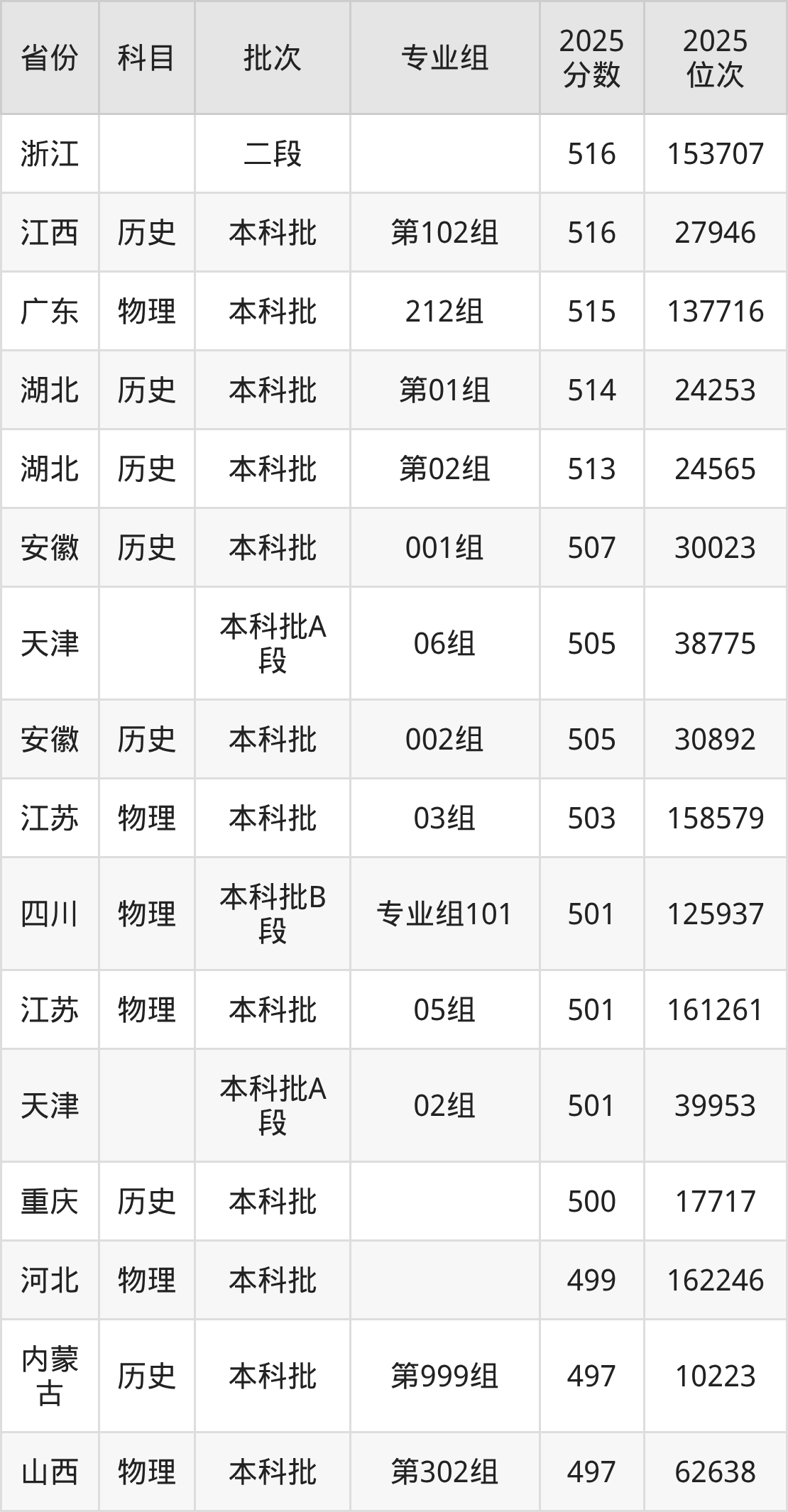 参考2025年山东省高考招录数据,按照分数线从高到低依次为大家展示新疆政法学院各个专业录取分数线。