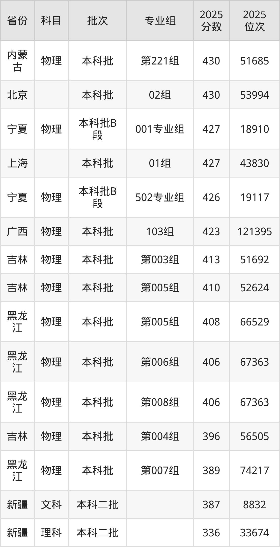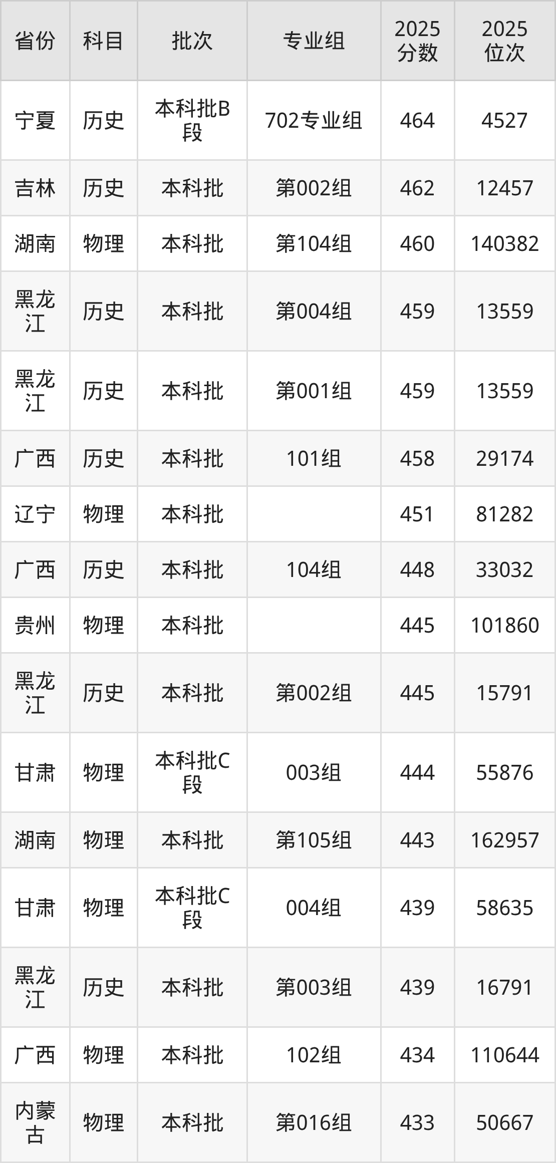下面是2025年新疆政法学院在全国各省录取最低分数据及位次,各位考生也可作为一个参考。