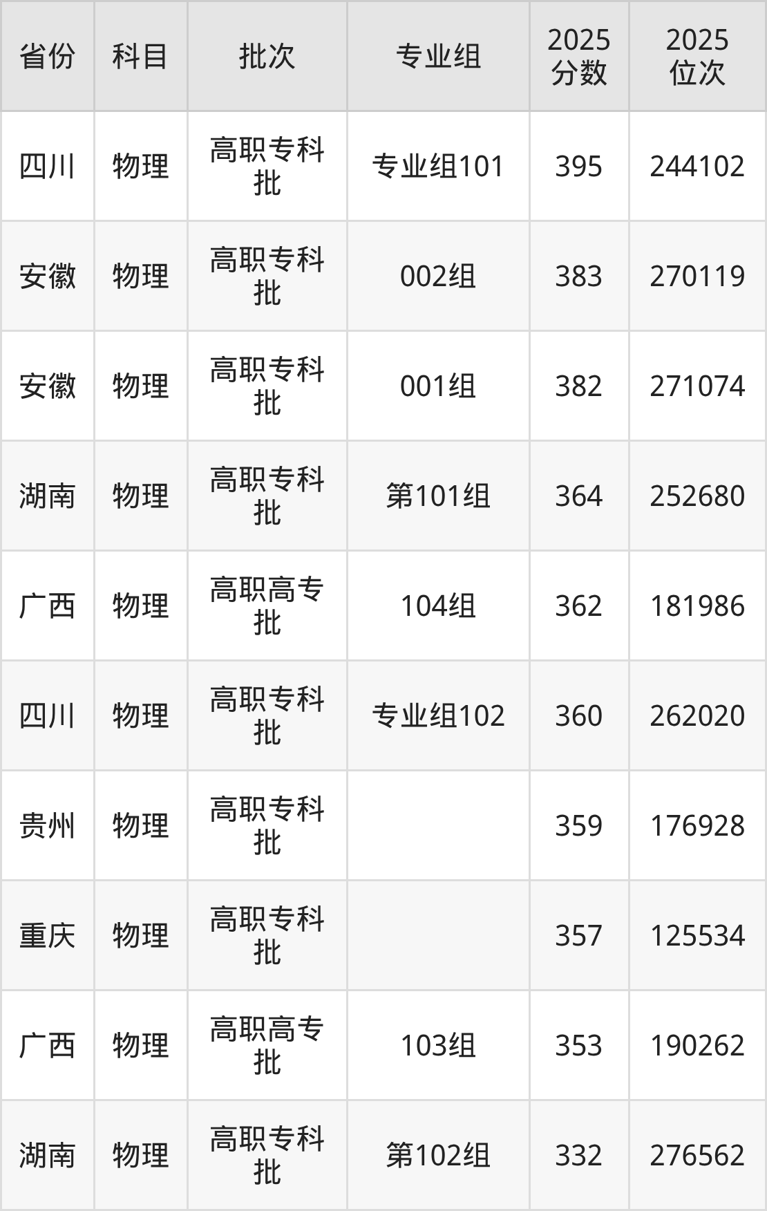 2025年云南交通职业技术学院全国录取分数线332分到395分,录取最高在四川(专业组101)、录取最低在湖南(第102组)。