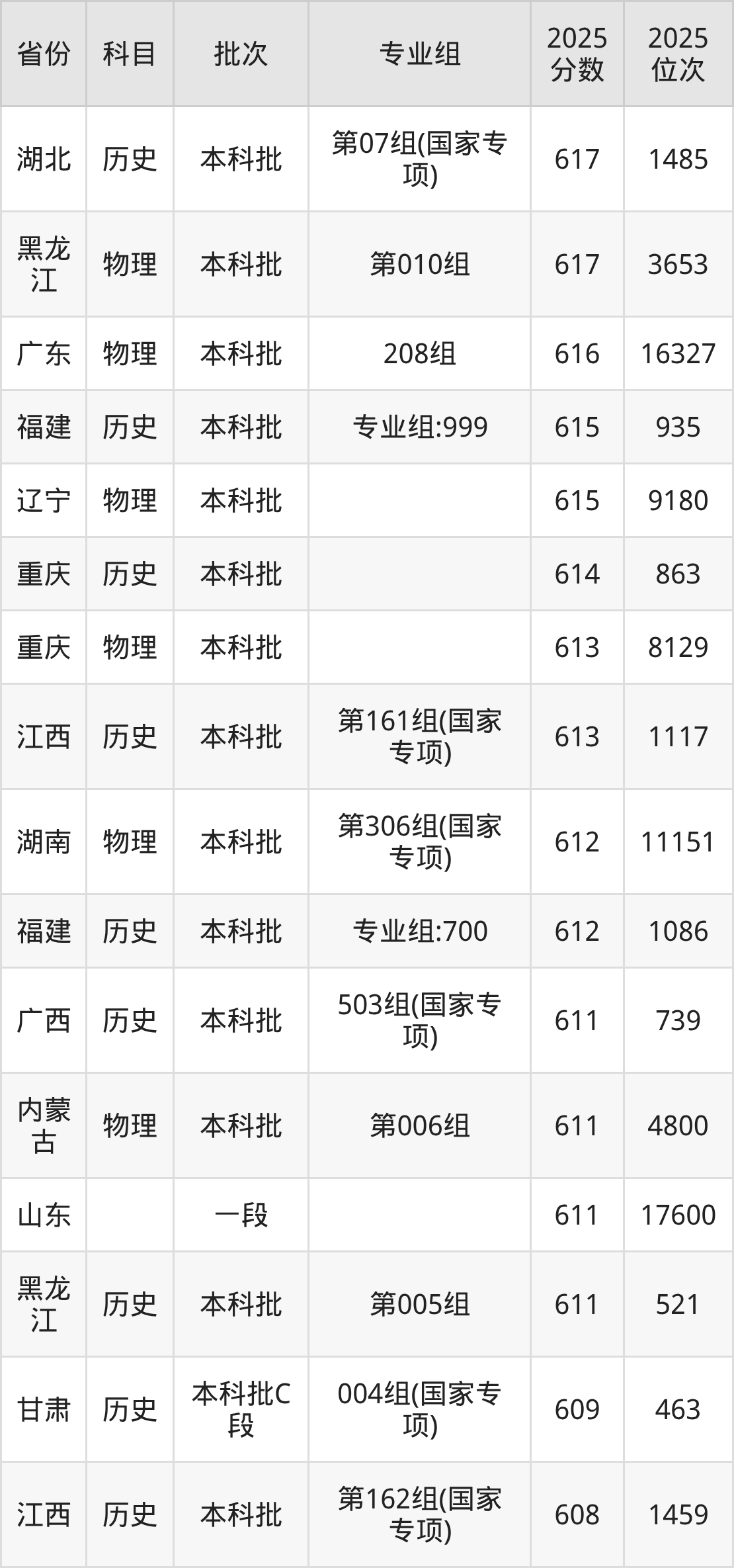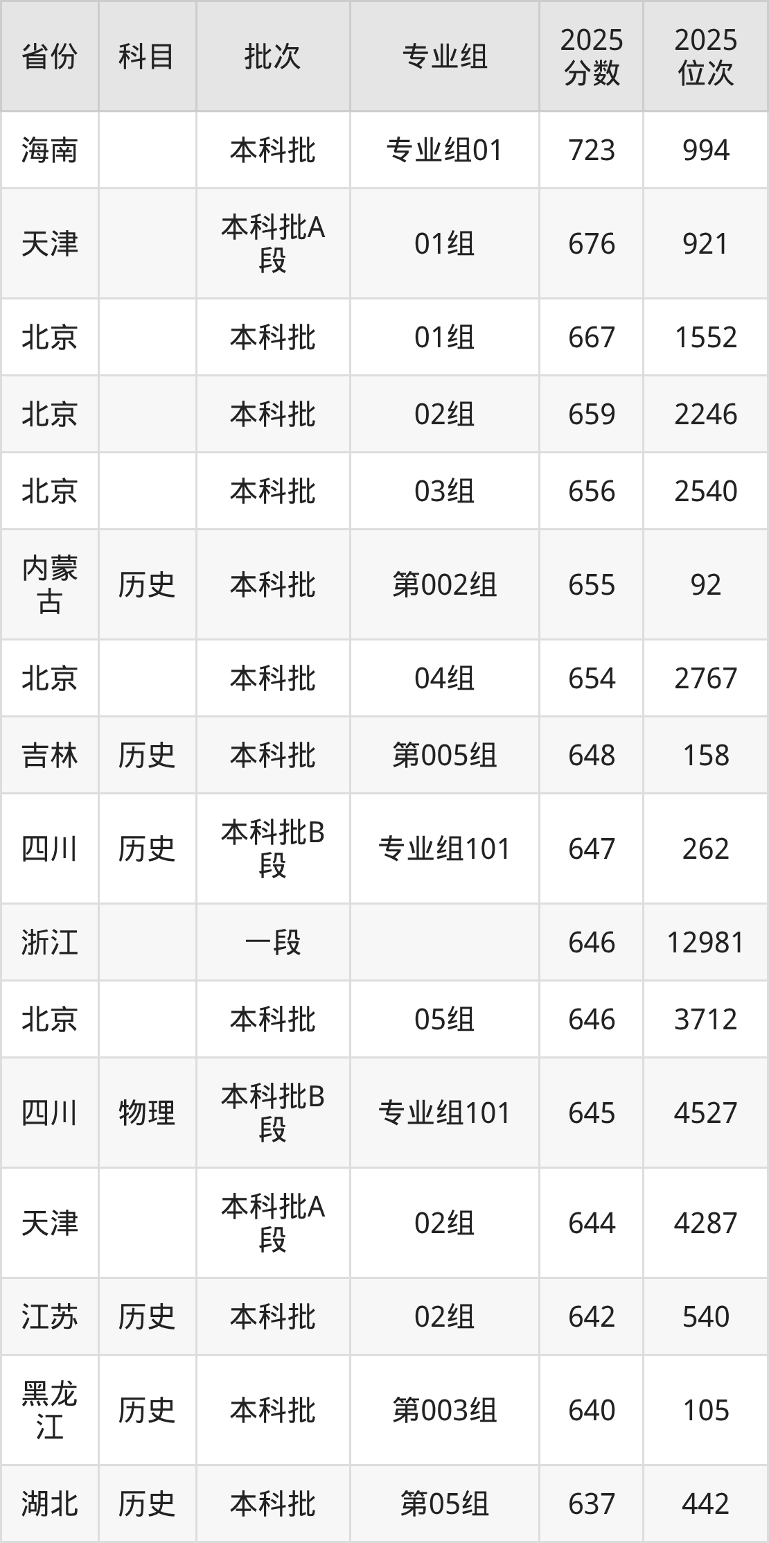 下面是2025年中国政法大学在全国各省录取最低分数据及位次,各位考生也可作为一个参考。