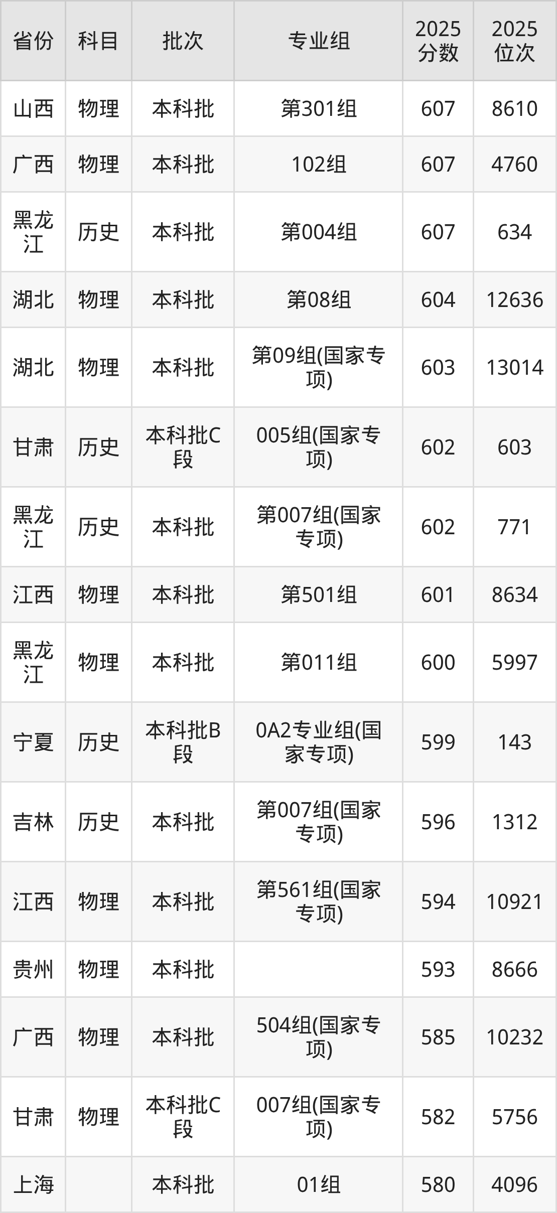 参考2025年山东省高考招录数据,按照分数线从高到低依次为大家展示中国政法大学各个专业录取分数线。