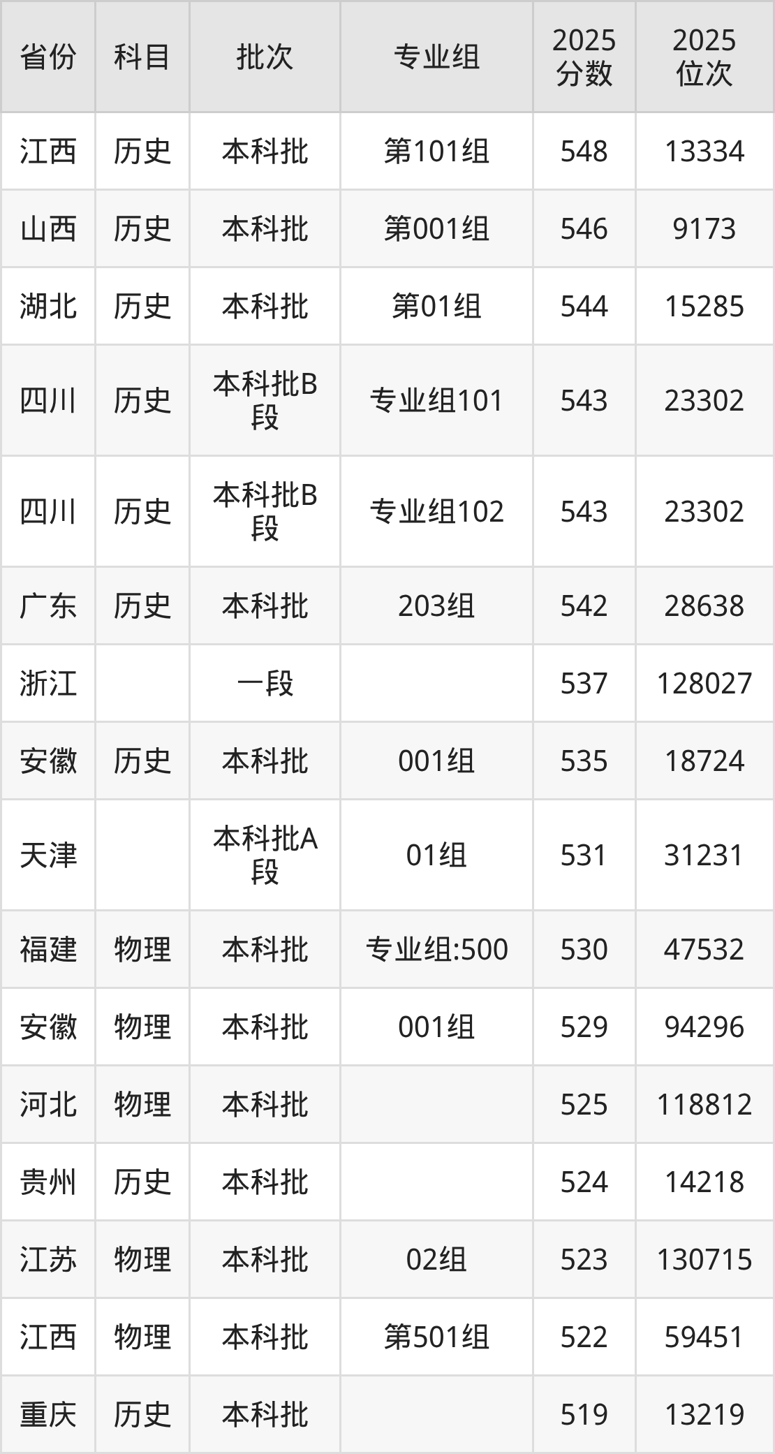 下面是2025年绍兴文理学院在全国各省录取最低分数据及位次,各位考生也可作为一个参考。