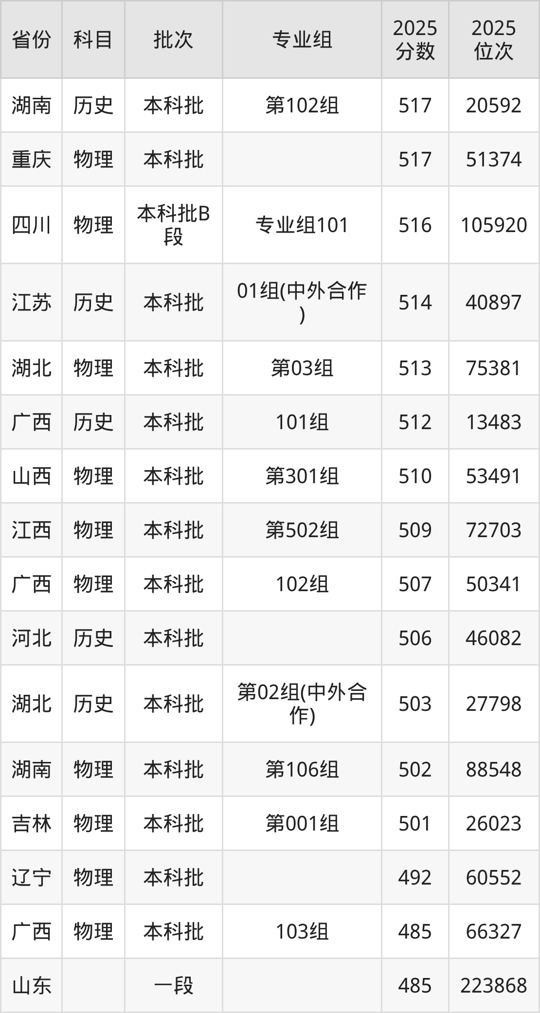 参考2025年山东省高考招录数据,按照分数线从高到低依次为大家展示绍兴文理学院各个专业录取分数线。