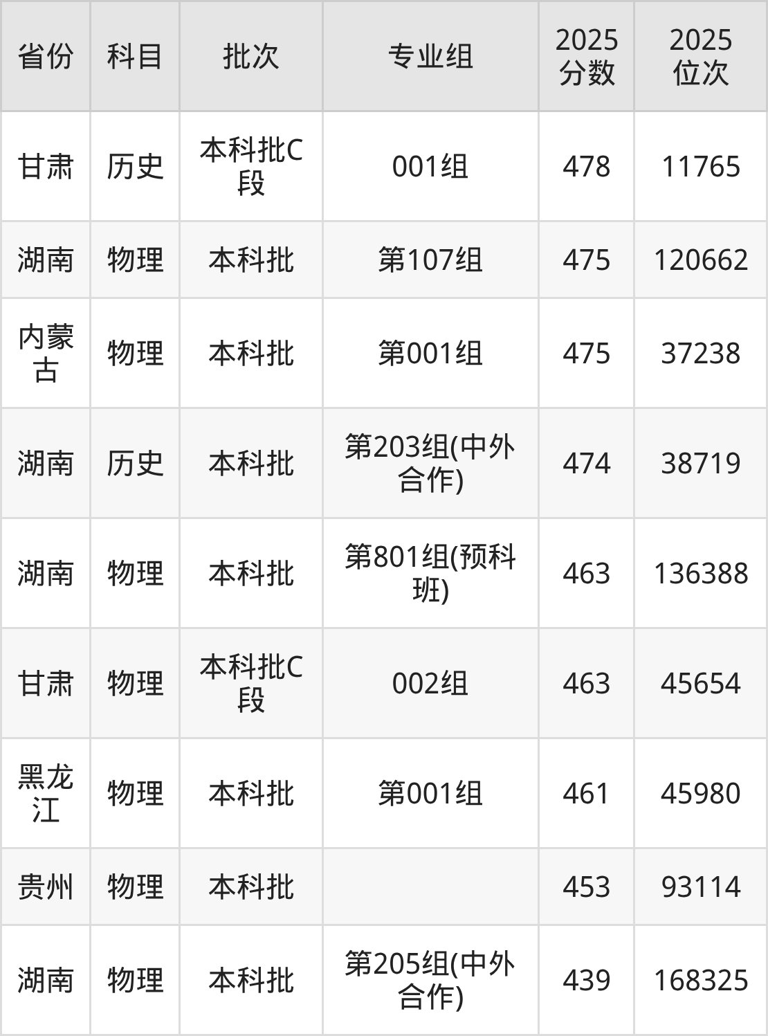 2025年绍兴文理学院全国录取分数线439分到548分,录取最高在江西(第101组)、录取最低在湖南(第205组(中外合作))。