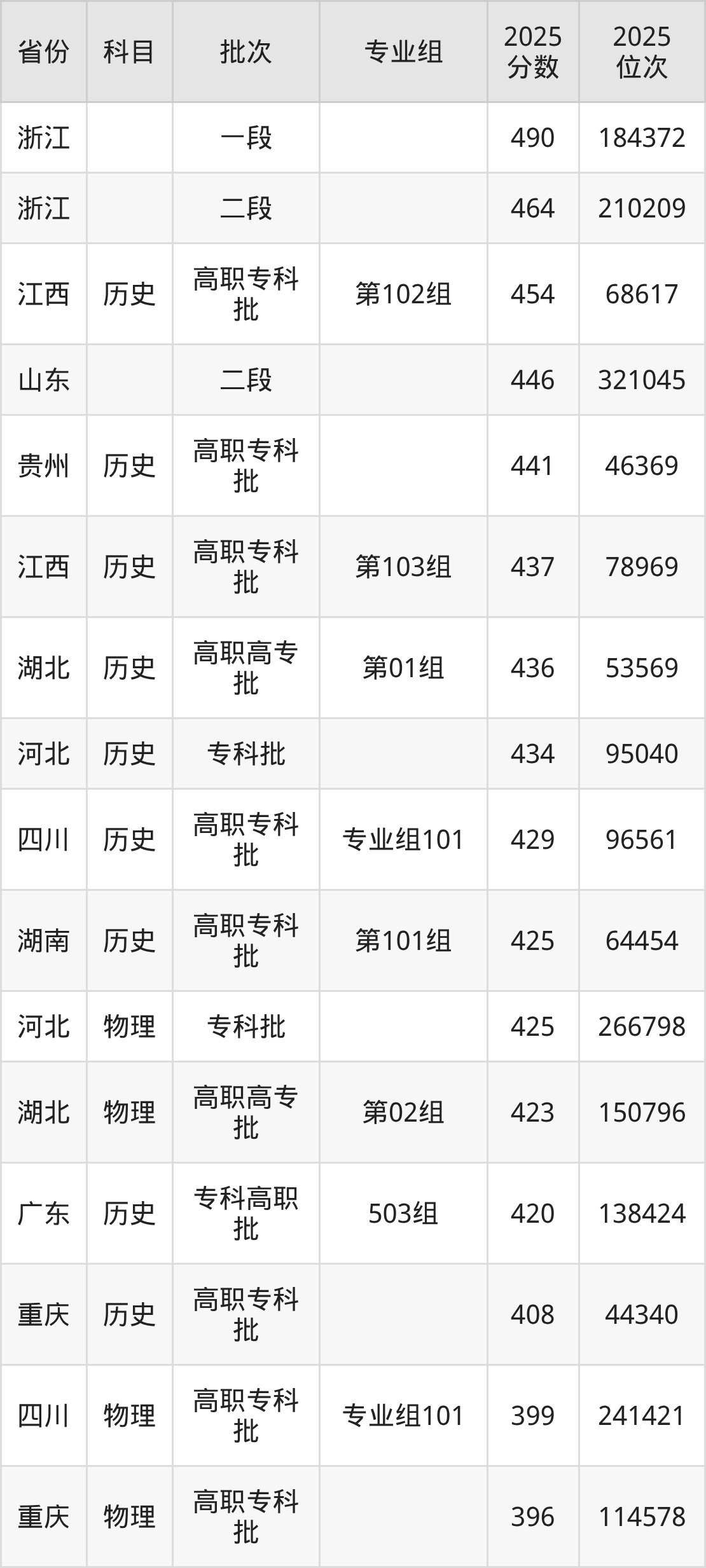 三、江西司法警官职业学院2025年录取分数线