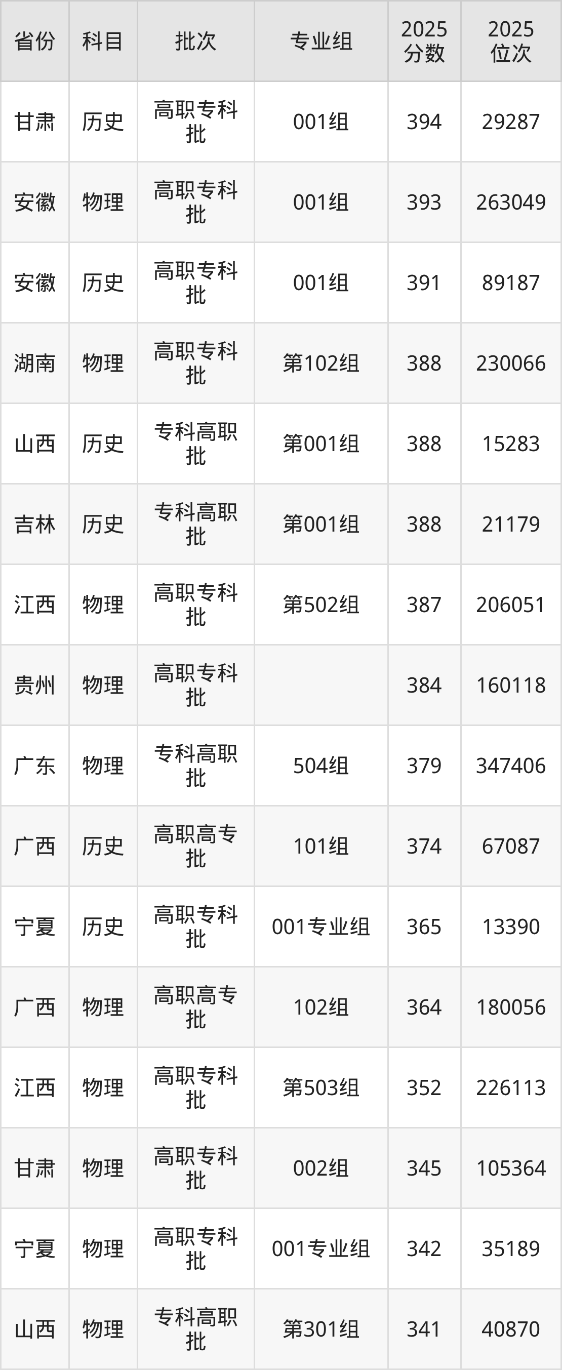 一、江西司法警官职业学院2025年专业录取分数线