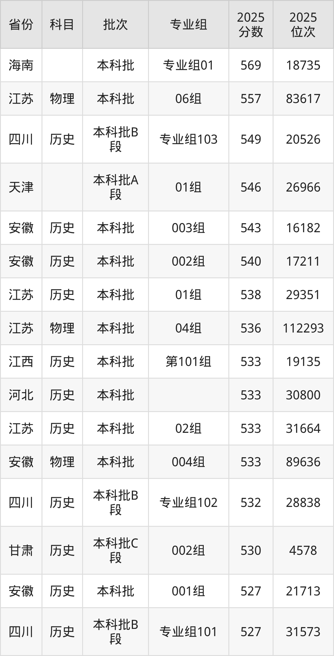 2025年沈阳师范大学全国录取分数线390分到569分,录取最高在海南(专业组01)、录取最低在新疆(文科)。