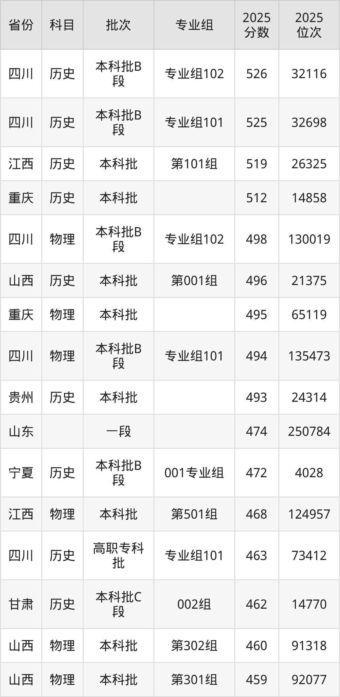 2025年陇南师范学院全国录取分数线227分到526分,录取最高在四川(专业组102)、录取最低在新疆(理科)。