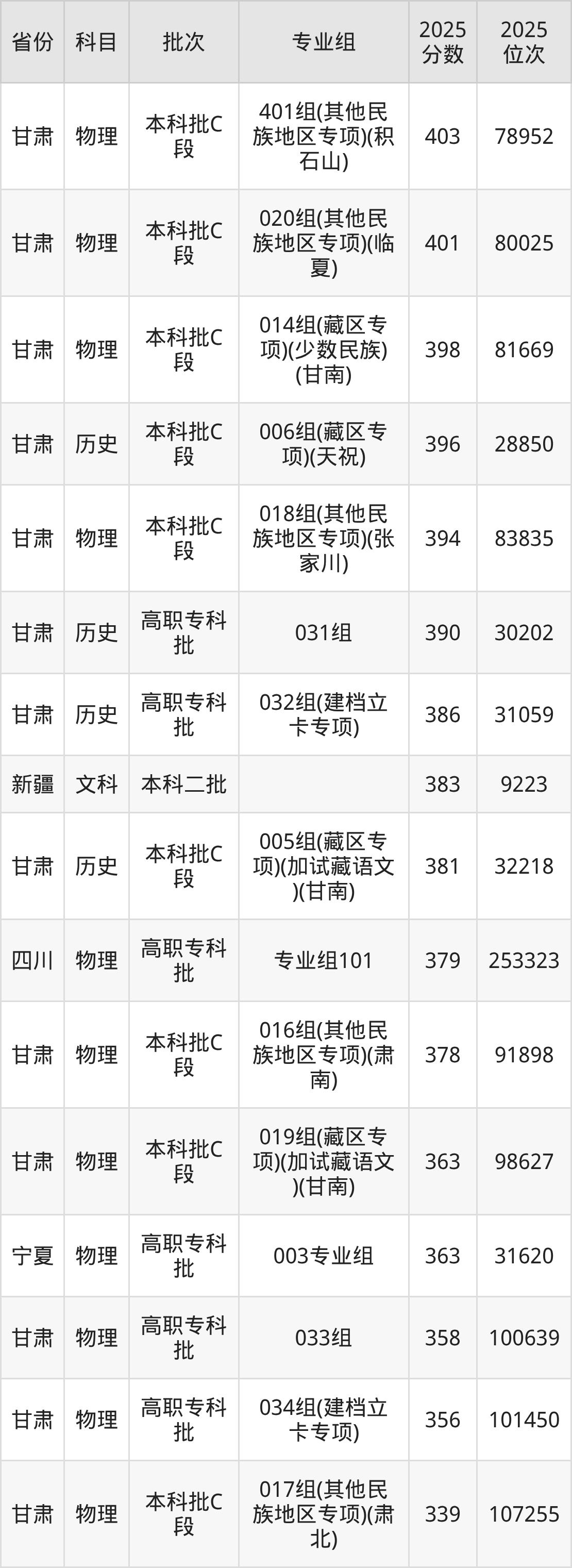 下面是2025年陇南师范学院在全国各省录取最低分数据及位次,各位考生也可作为一个参考。