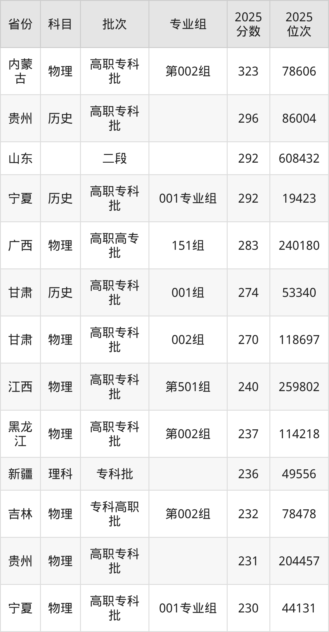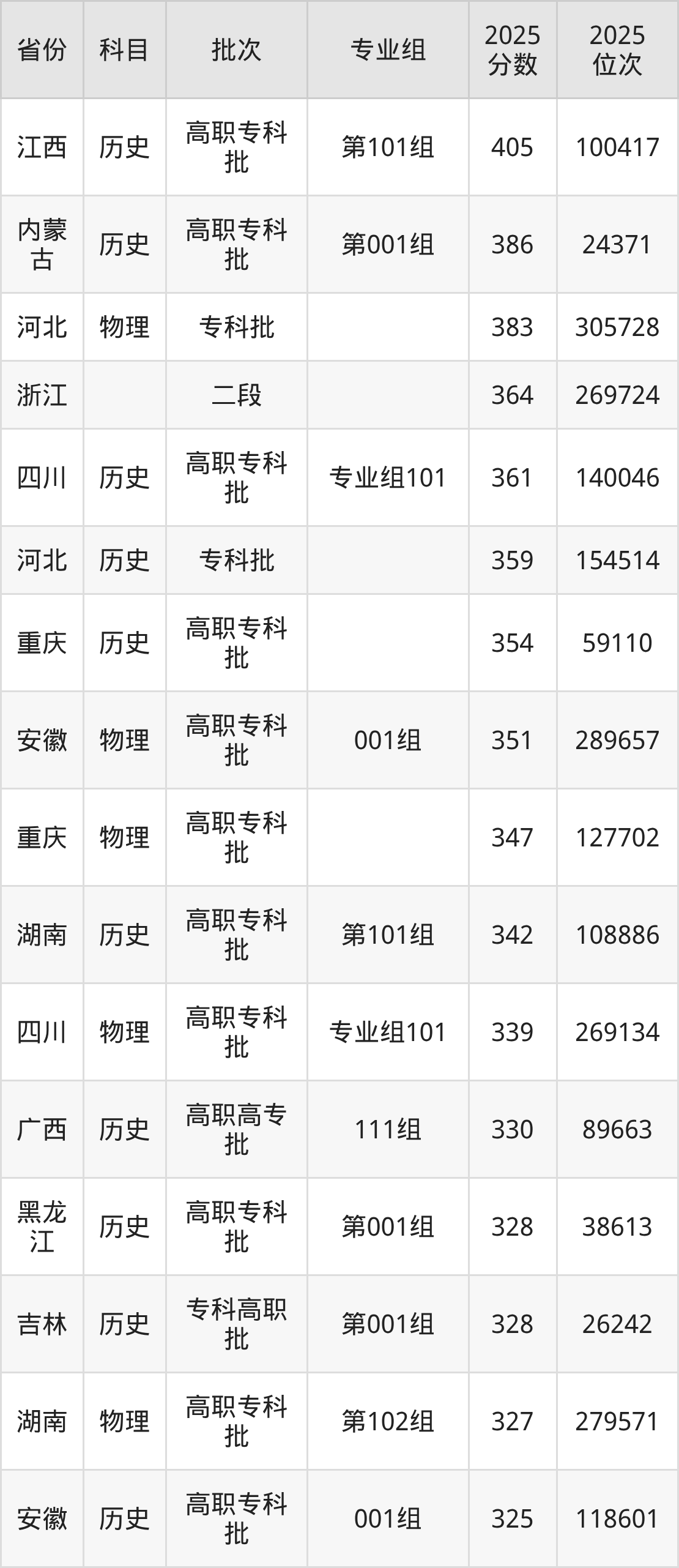 下面是2025年鹤壁职业技术学院在全国各省录取最低分数据及位次,各位考生也可作为一个参考。