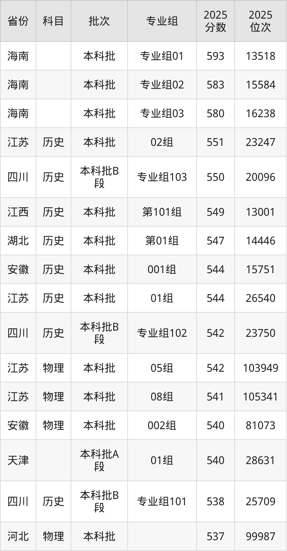 2025年苏州工学院全国录取分数线453分到593分,录取最高在海南(专业组01)、录取最低在上海(01组)。