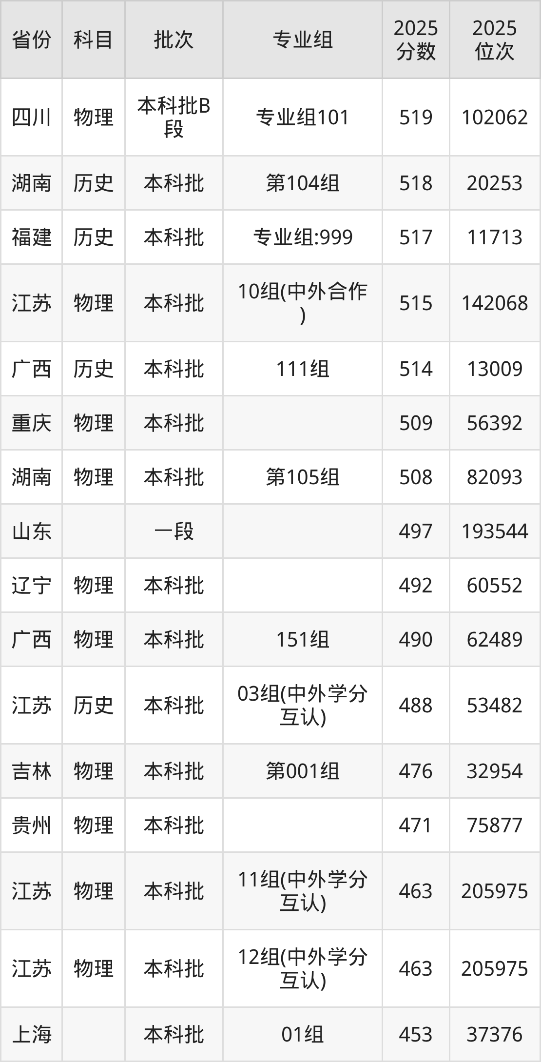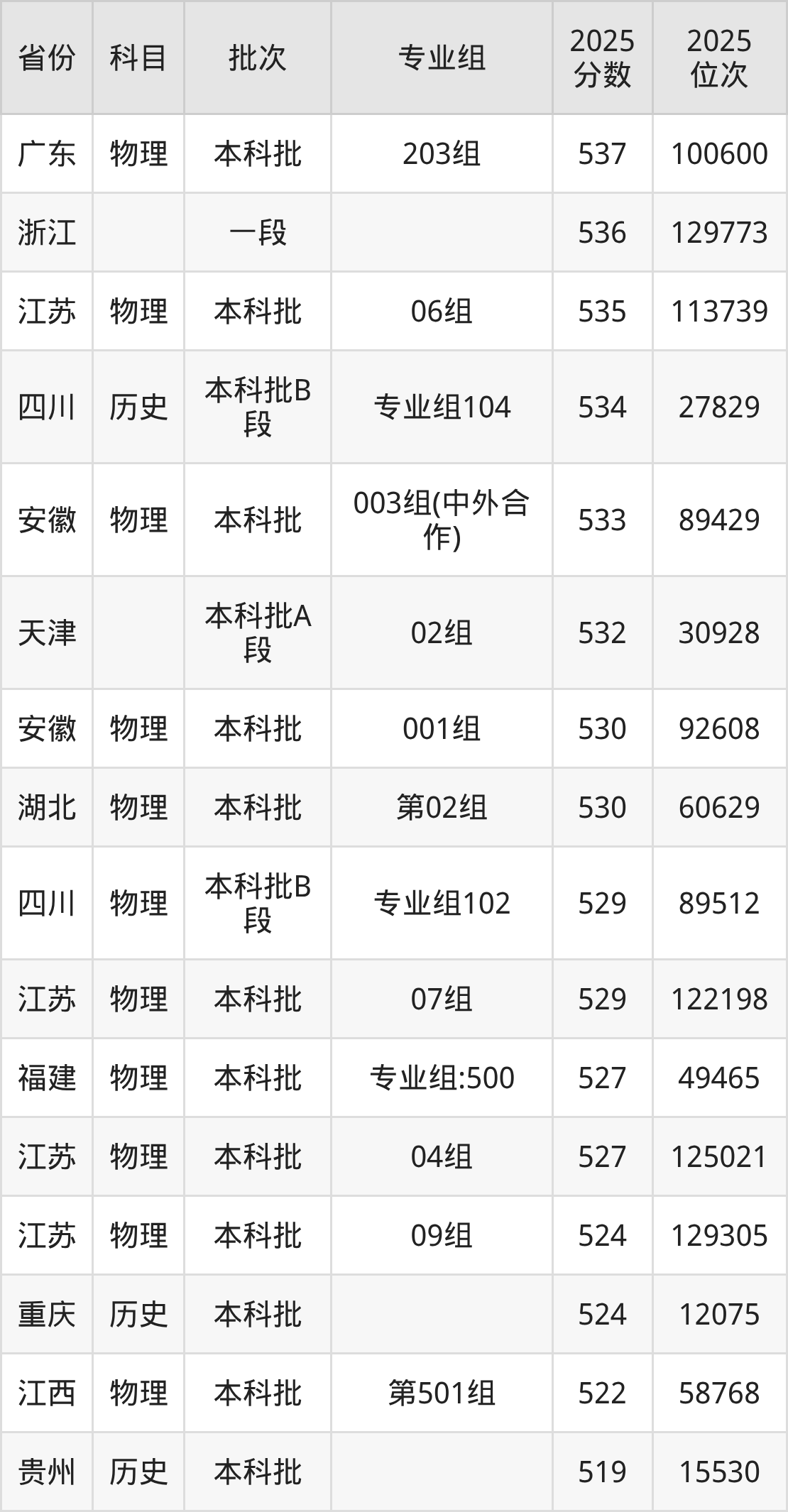 参考2025年山东省高考招录数据,按照分数线从高到低依次为大家展示苏州工学院各个专业录取分数线。