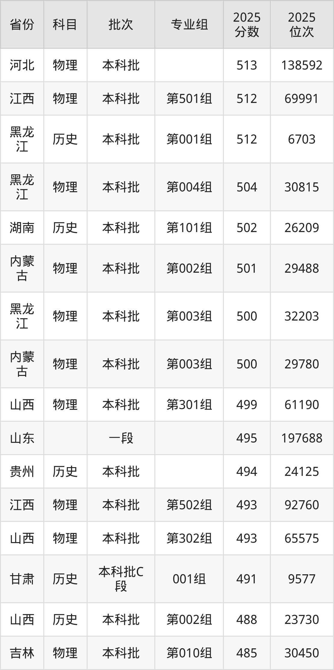 参考2025年山东省高考招录数据,按照分数线从高到低依次为大家展示吉林警察学院各个专业录取分数线。