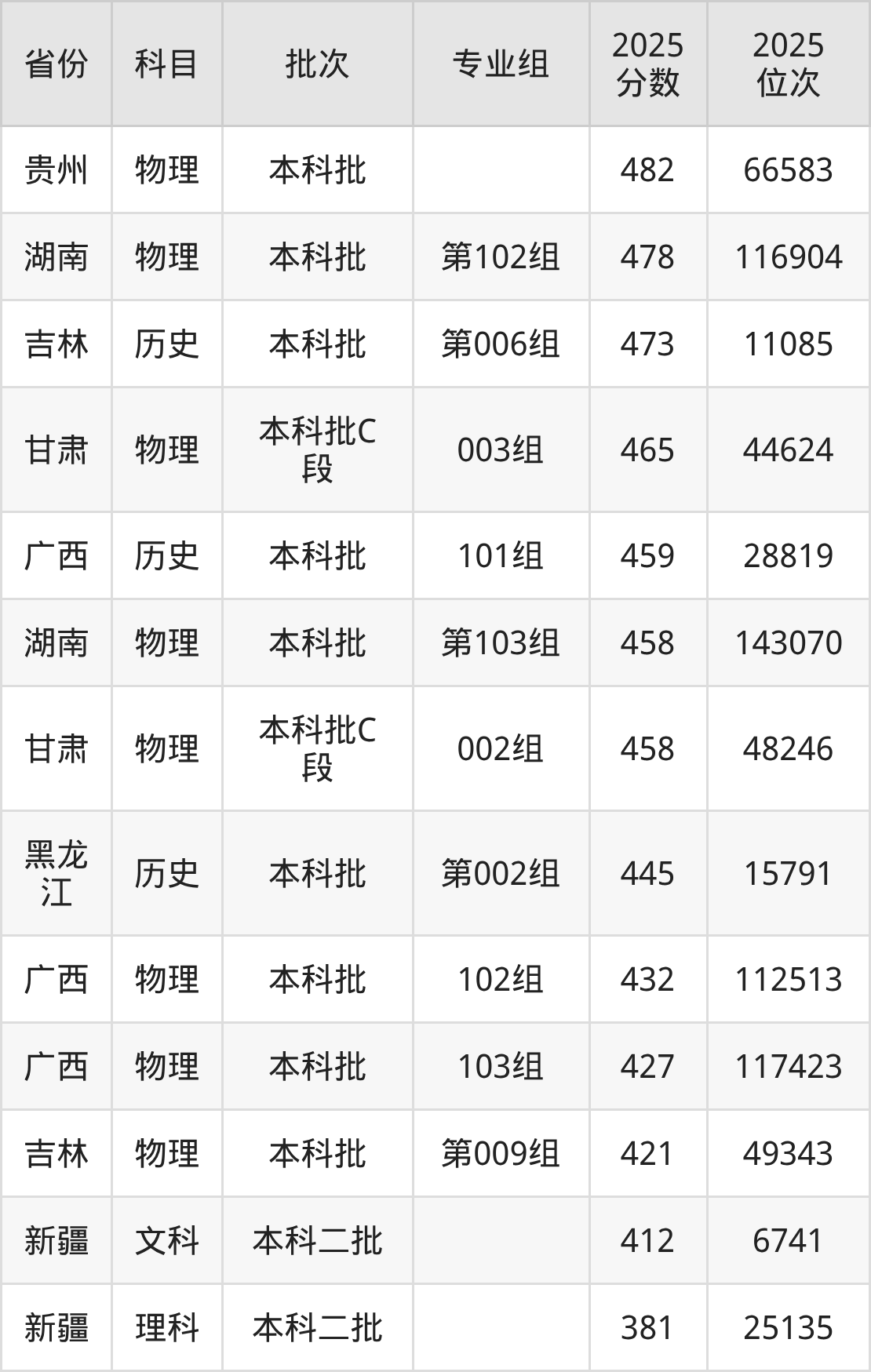 下面是2025年吉林警察学院在全国各省录取最低分数据及位次,各位考生也可作为一个参考。