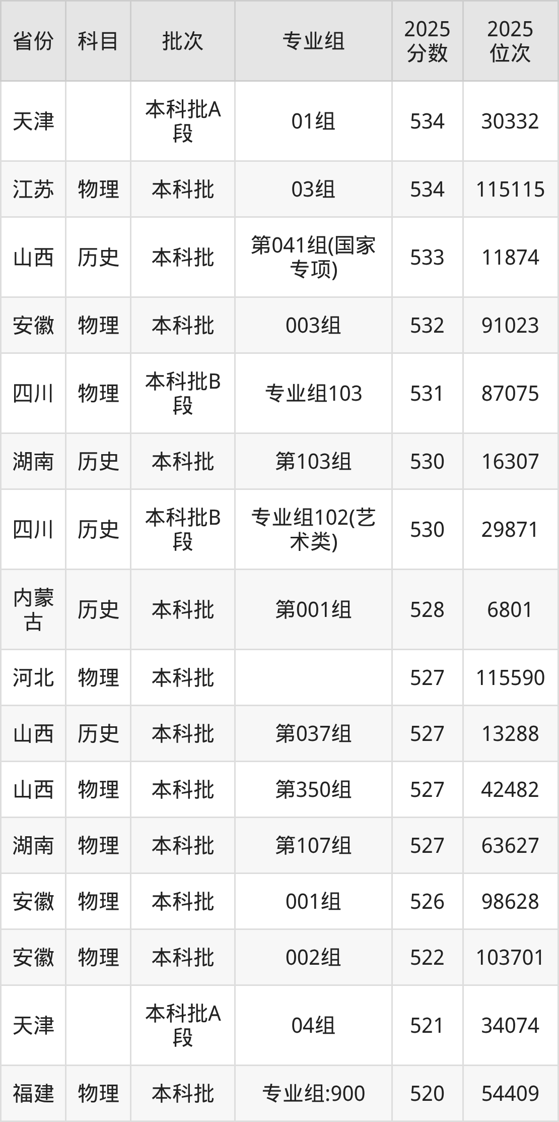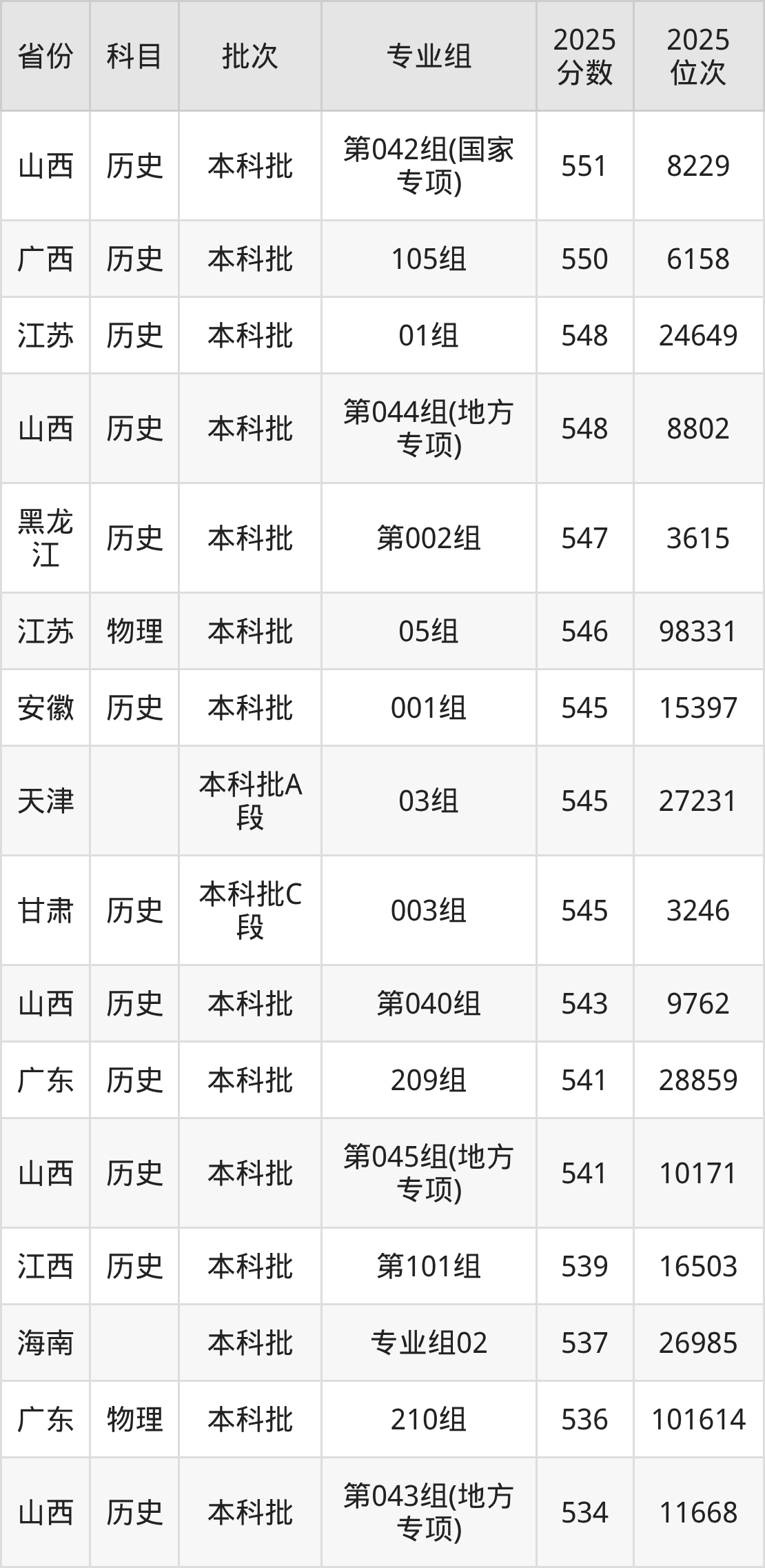 参考2025年山东省高考招录数据,按照分数线从高到低依次为大家展示山西师范大学各个专业录取分数线。