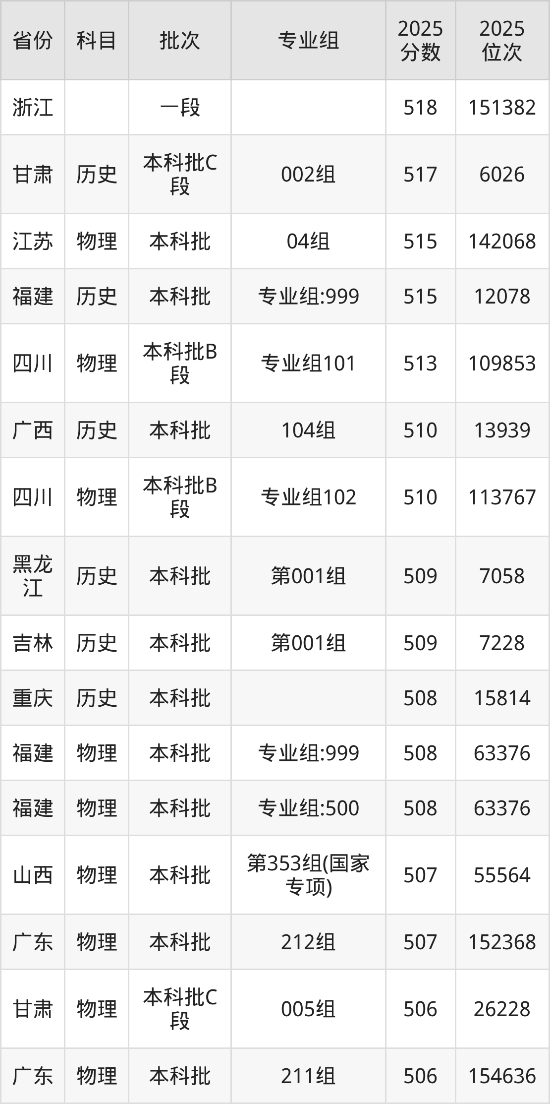 2025年山西师范大学各专业录取分数线从487分到587分不等,录取分数线最低的专业是生物技术;录取分数线最高的专业是法学。本文将展示山西师范大学所有专业最低分数线及位次,供2026届高考生参考。