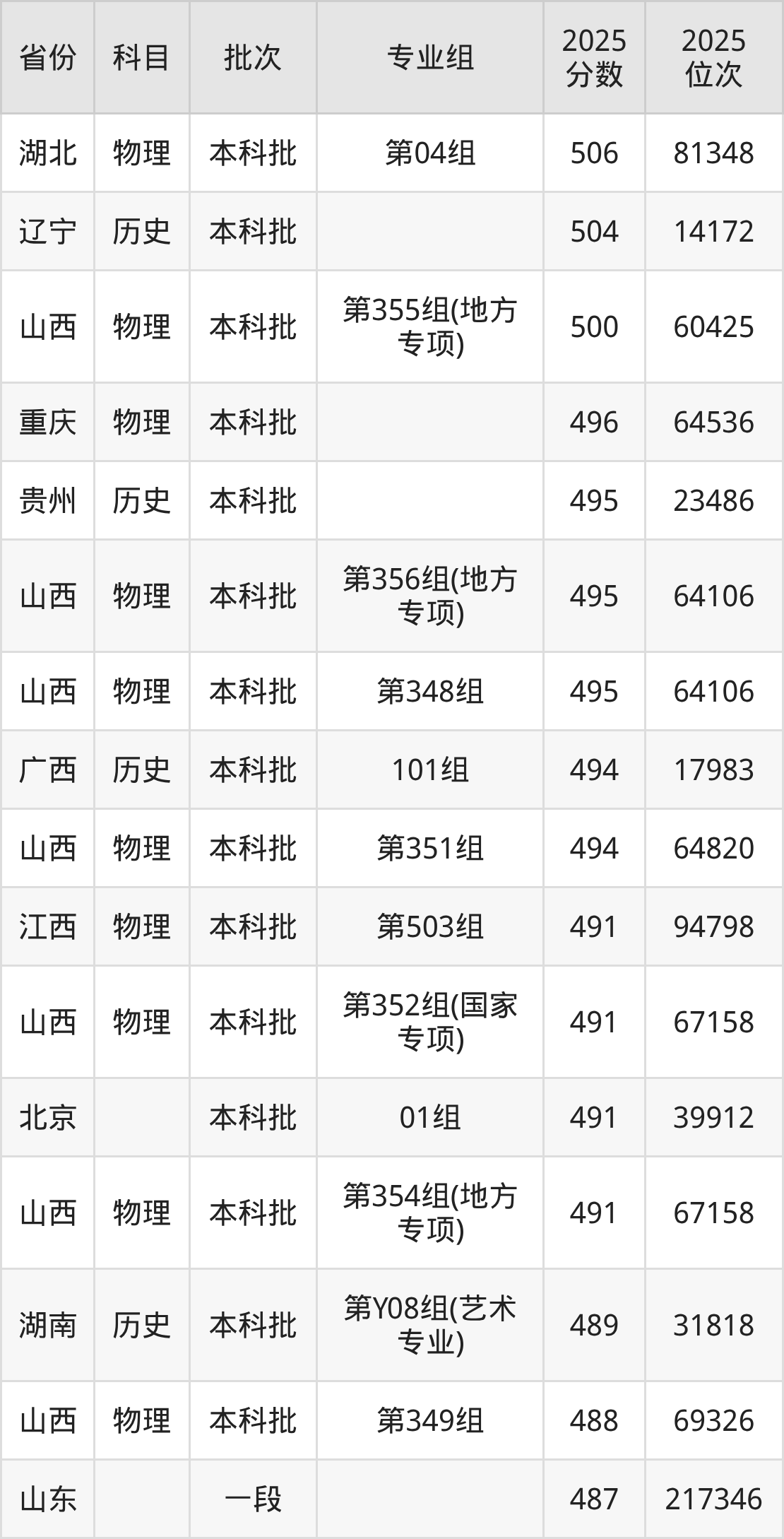 下面是2025年山西师范大学在全国各省录取最低分数据及位次,各位考生也可作为一个参考。