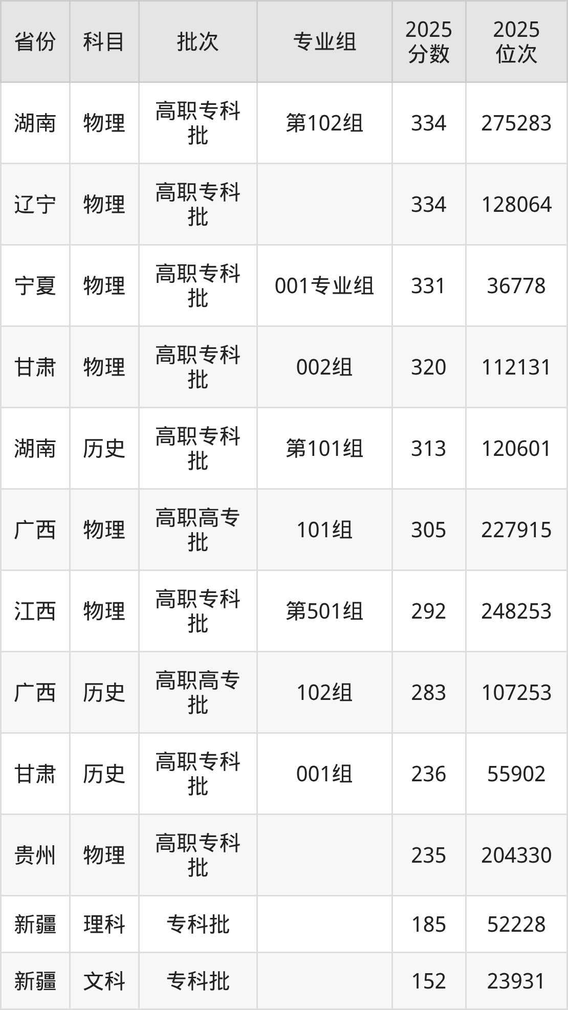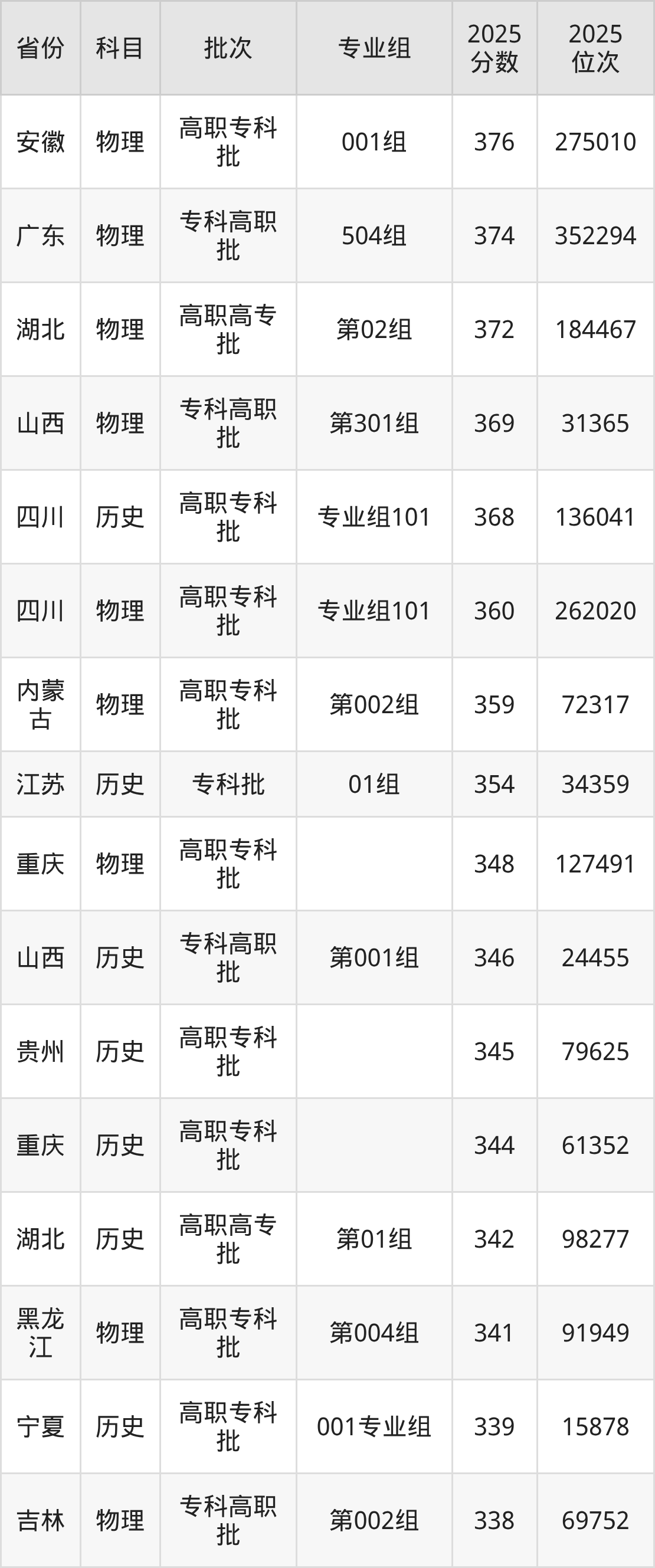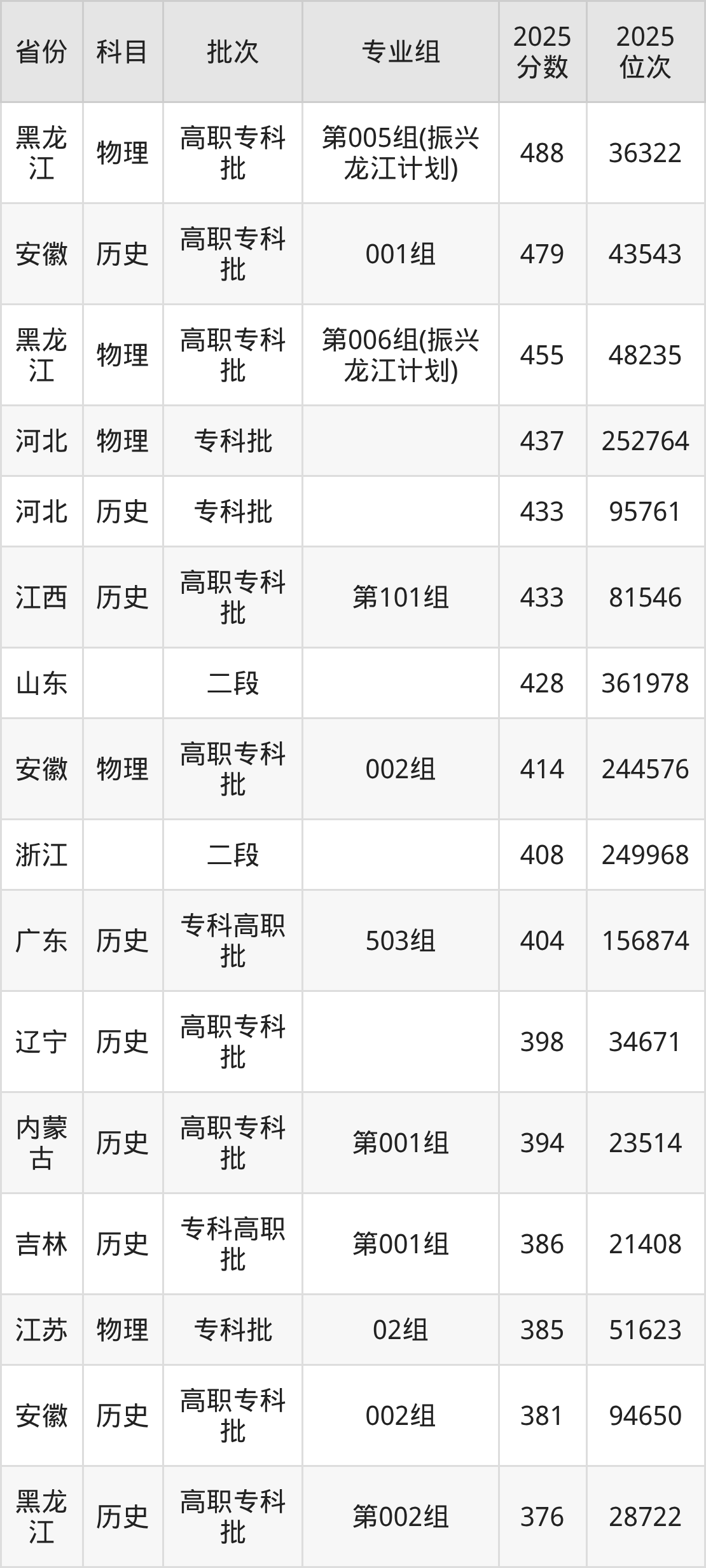 2025年黑龙江农业工程职业学院全国录取分数线152分到488分,录取最高在黑龙江(第005组(振兴龙江计划))、录取最低在新疆(文科)。