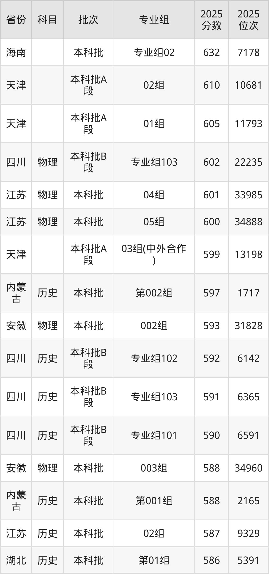 2025年宁夏大学全国录取分数线411分到632分,录取最高在海南(专业组02)、录取最低在宁夏(5k4专业组(在中卫市就读))。