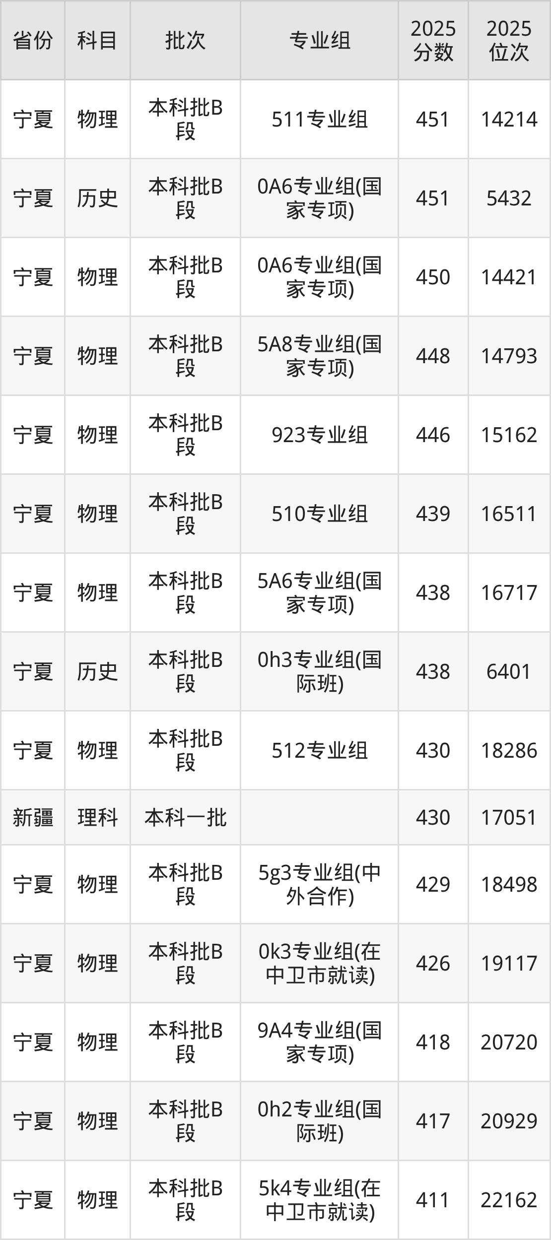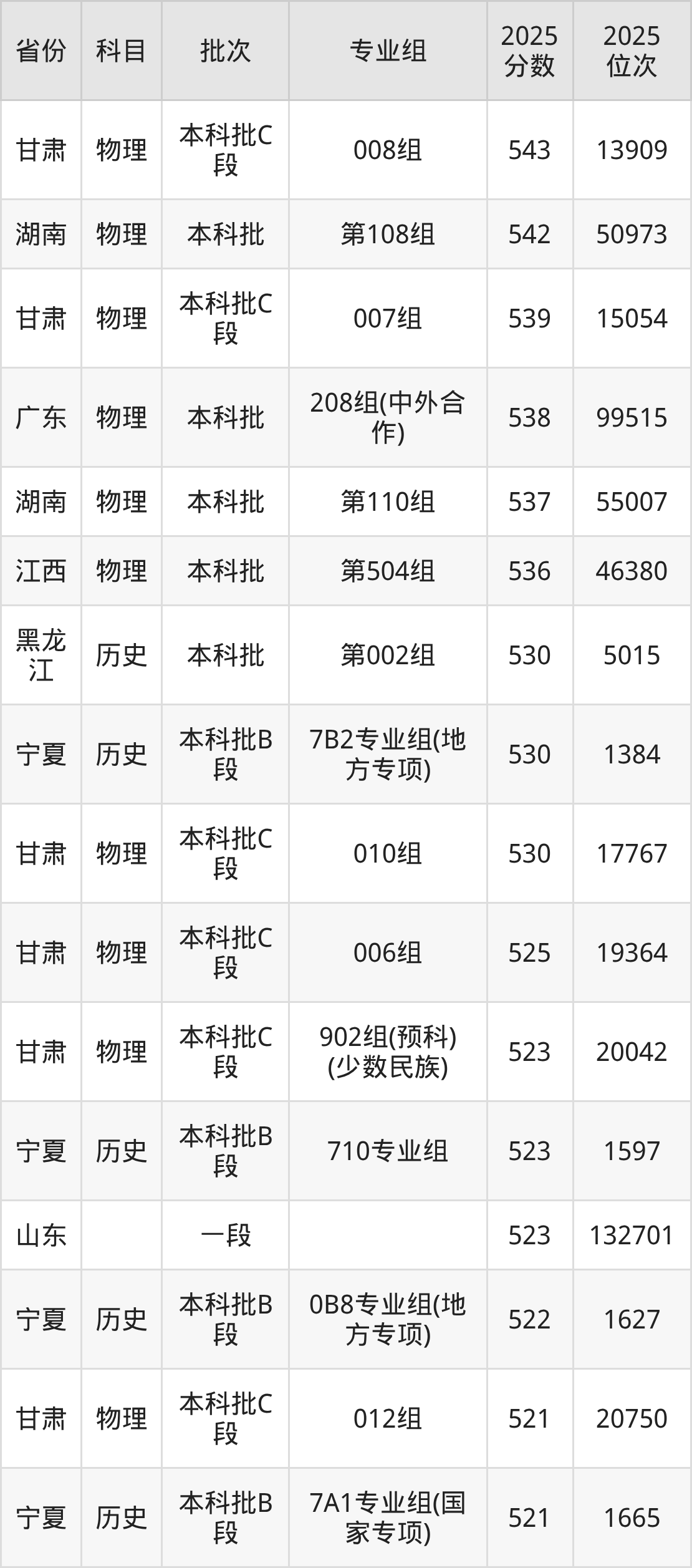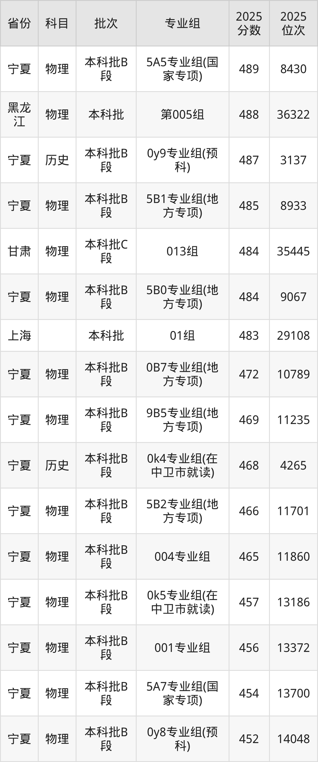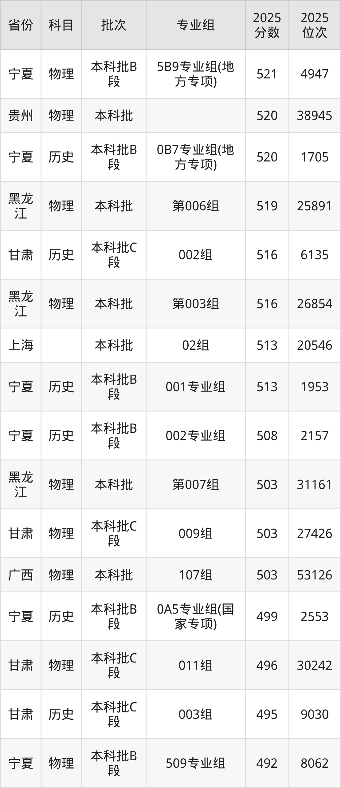 参考2025年山东省高考招录数据,按照分数线从高到低依次为大家展示宁夏大学各个专业录取分数线。