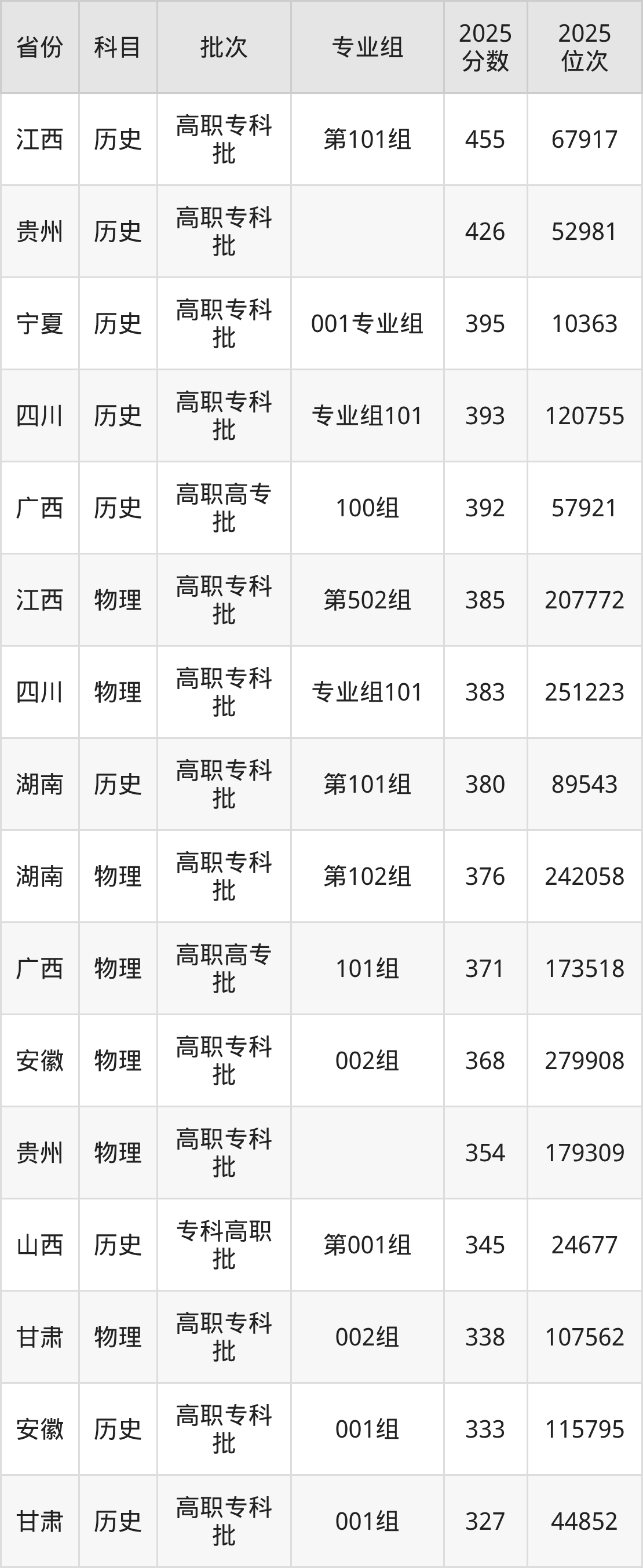 2025年福建林业职业技术学院全国录取分数线224分到455分,录取最高在江西(第101组)、录取最低在新疆(理科)。