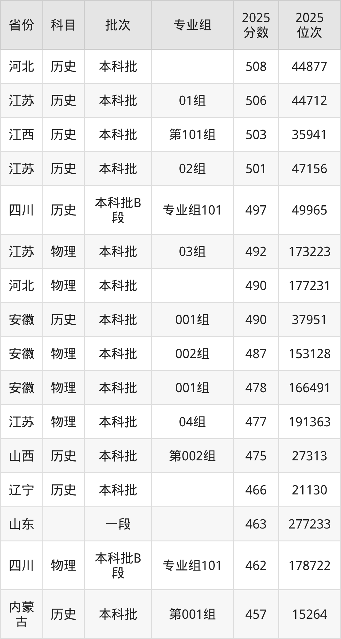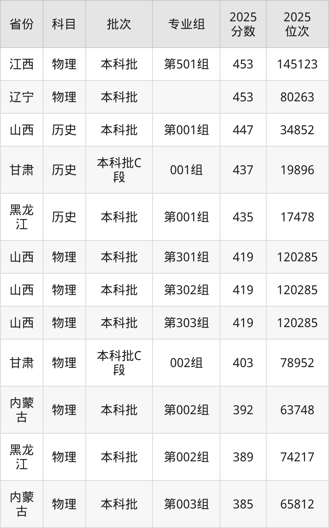 下面是2025年山西工商学院在全国各省录取最低分数据及位次,各位考生也可作为一个参考。
