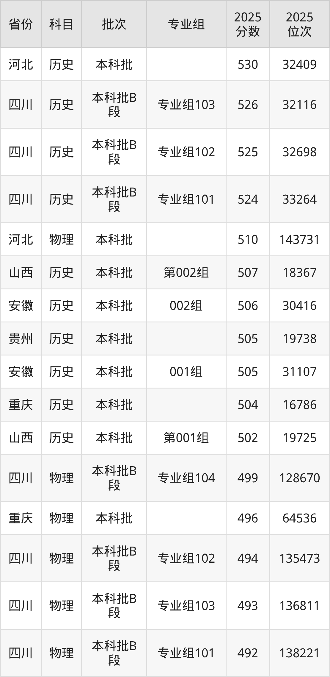 下面是2025年亳州学院在全国各省录取最低分数据及位次,各位考生也可作为一个参考。