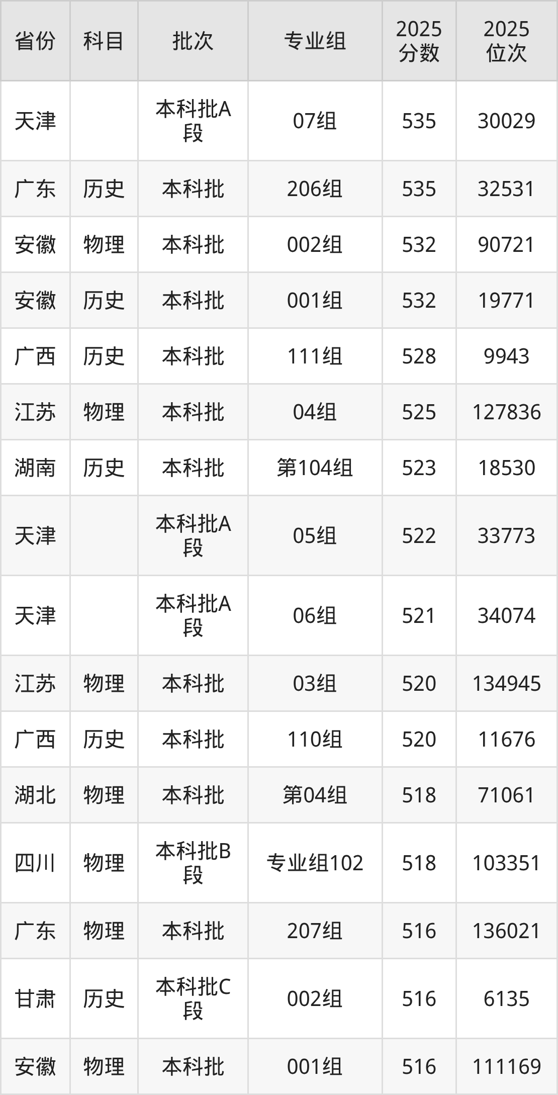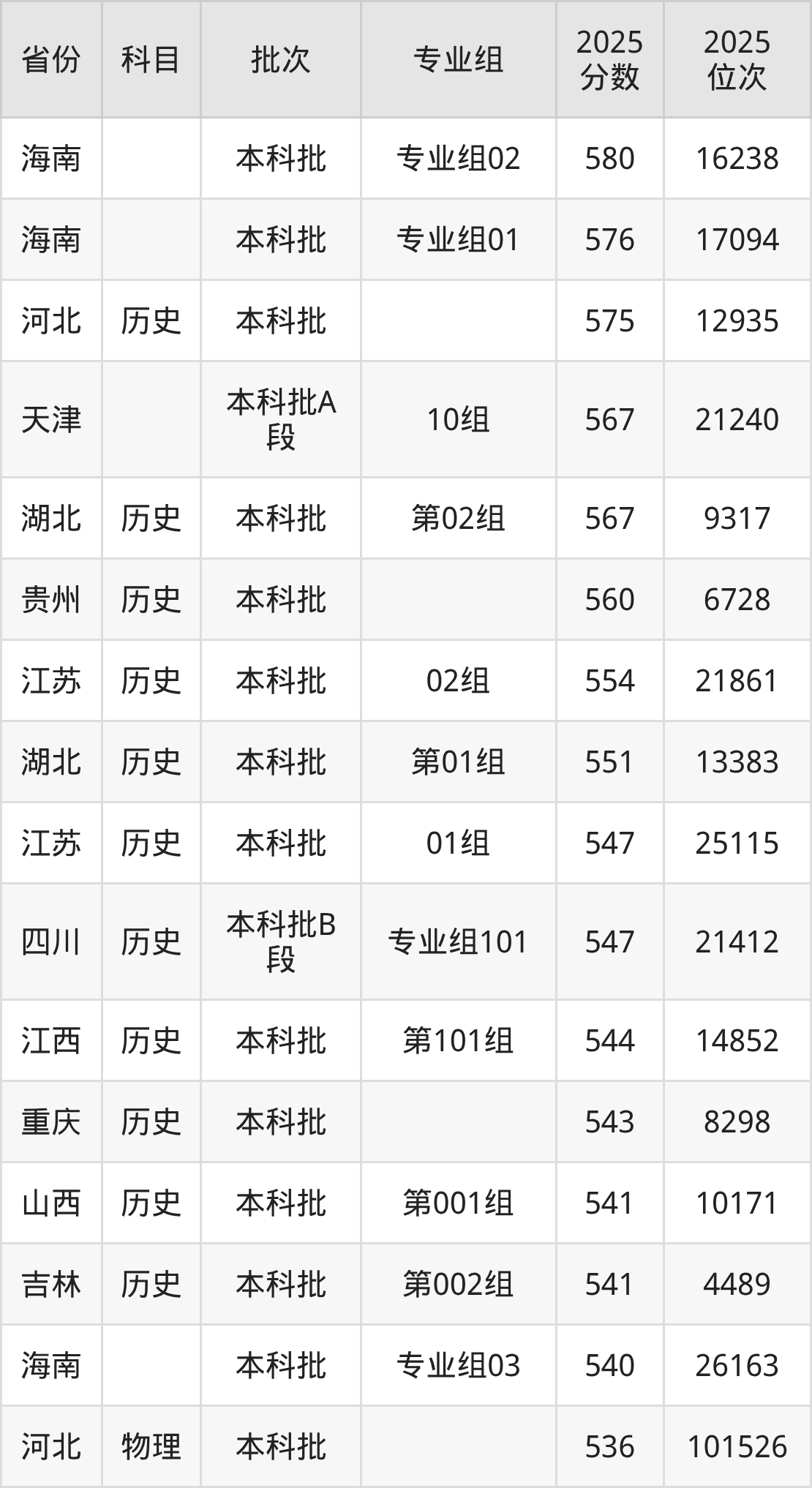 5、软件工程:539分、位次101653名;