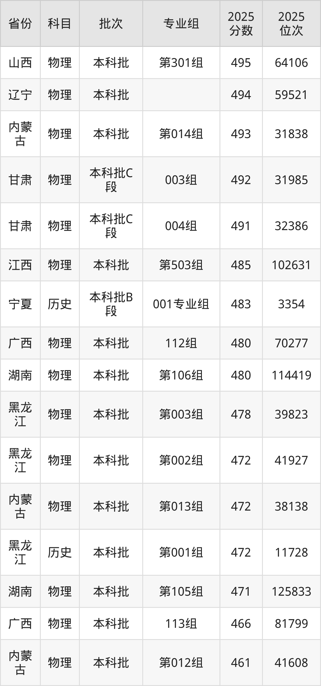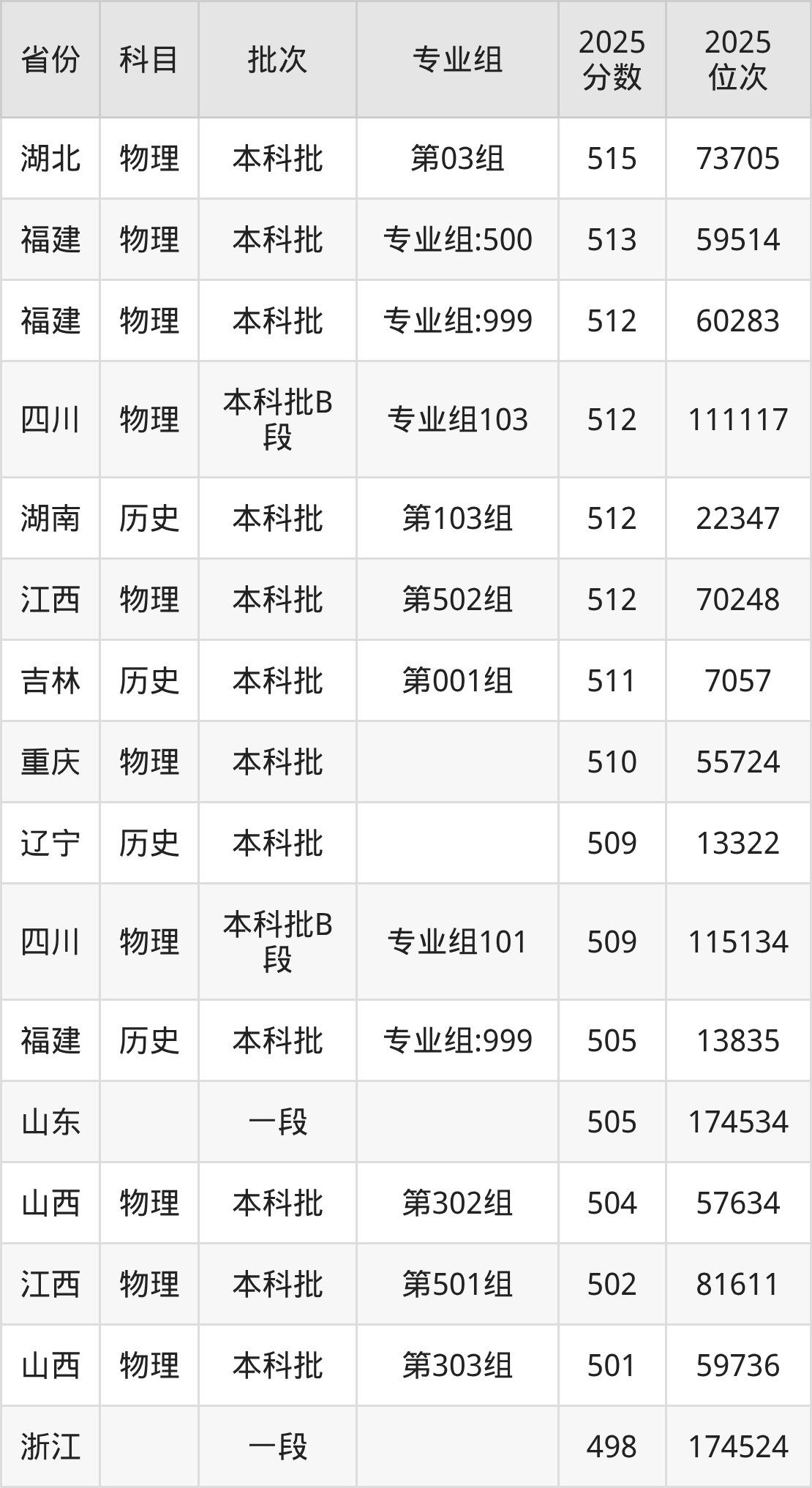 10、物理学:513分、位次155084名;
