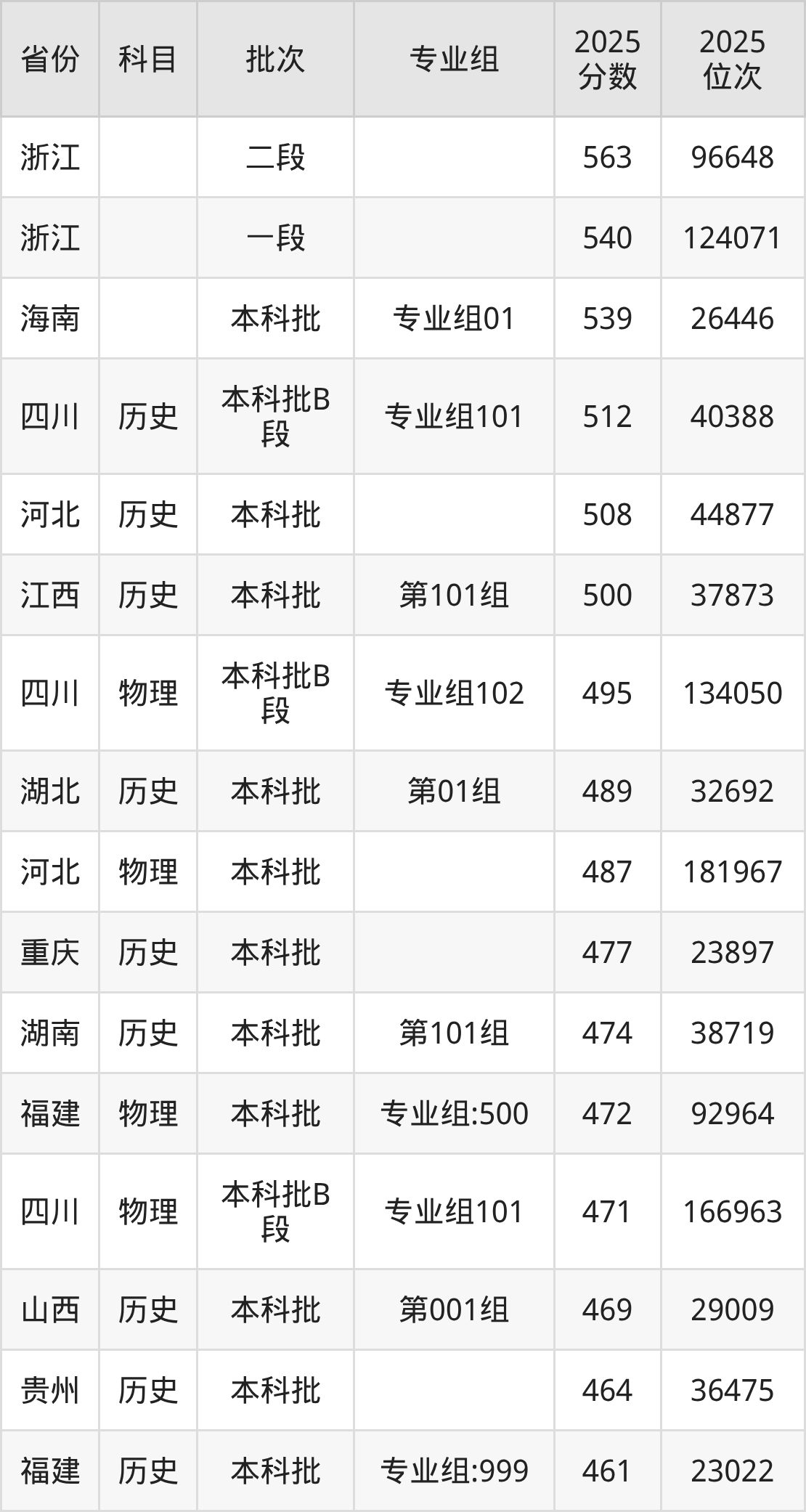 参考2025年河北省高考招录数据,按照分数线从高到低依次为大家展示贵州黔南经济学院各个专业录取分数线。