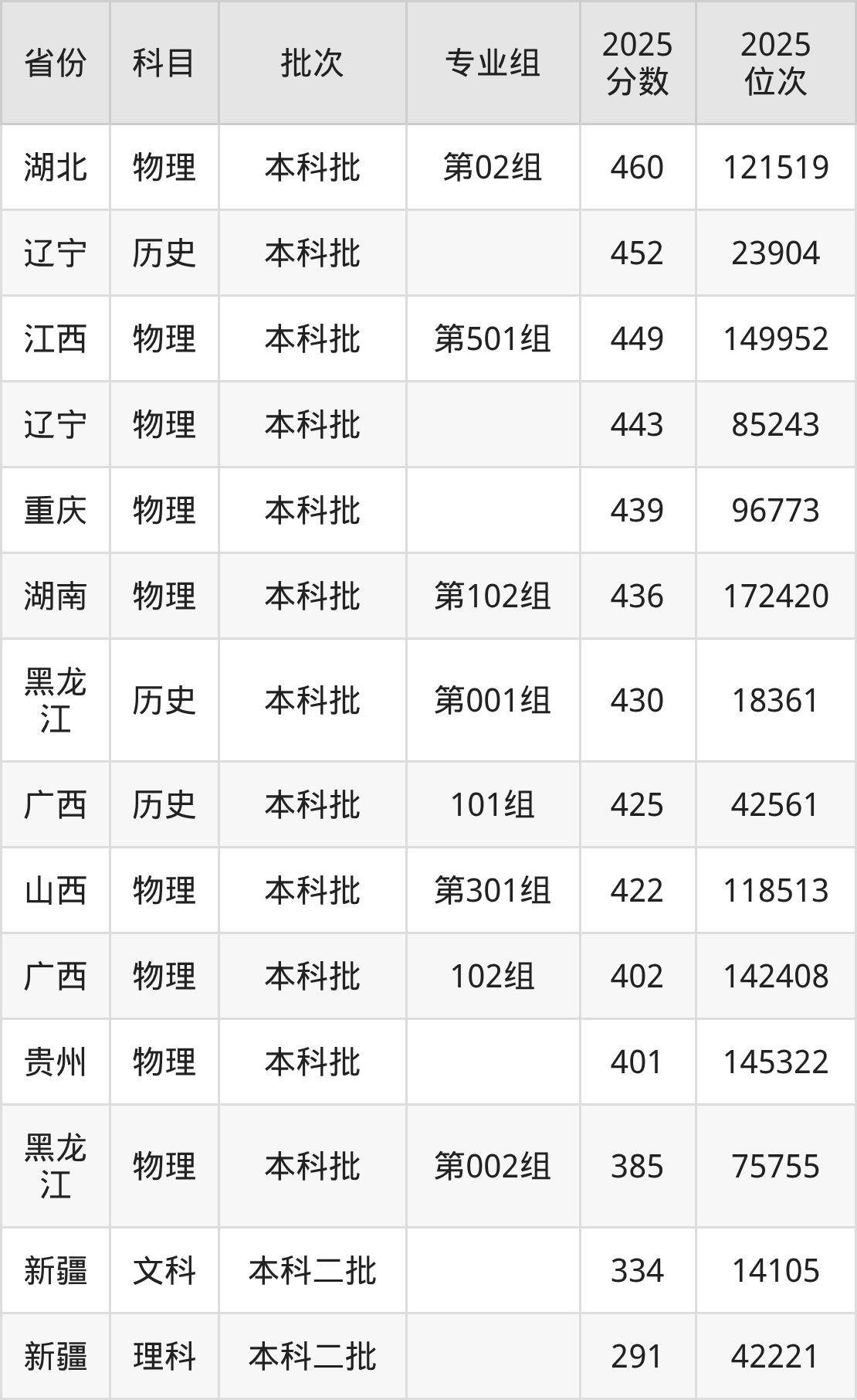 下面是2025年贵州黔南经济学院在全国各省录取最低分数据及位次,各位考生也可作为一个参考。