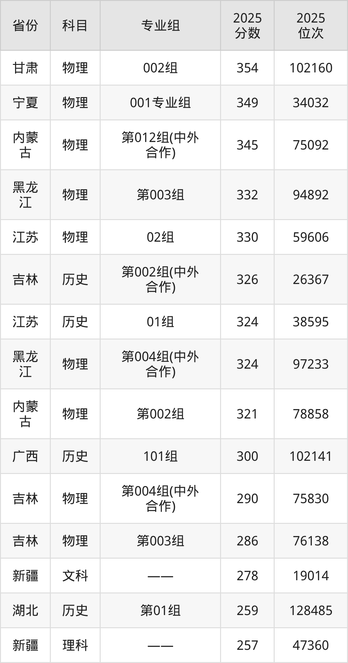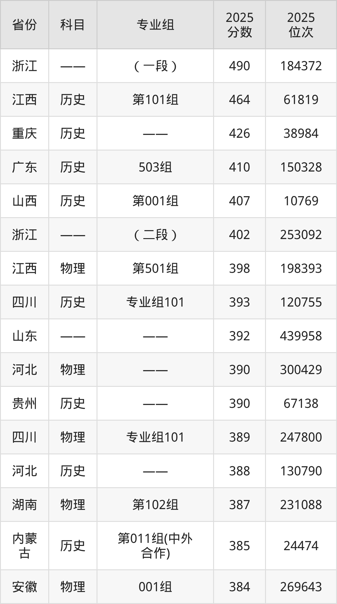 2025年长春金融高等专科学校全国录取分数线257分到490分,录取最高在浙江、录取最低在新疆(理科)。