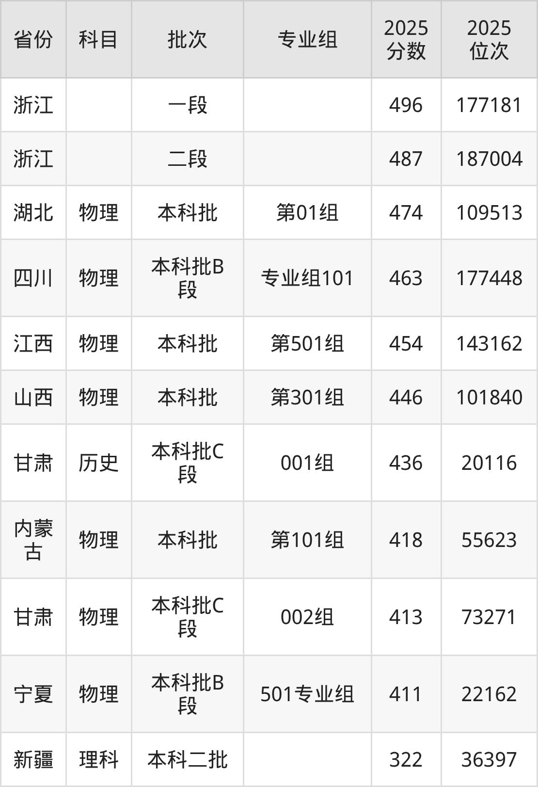 下面是2025年西安理工大学高科学院在全国各省录取最低分数据及位次,各位考生也可作为一个参考。