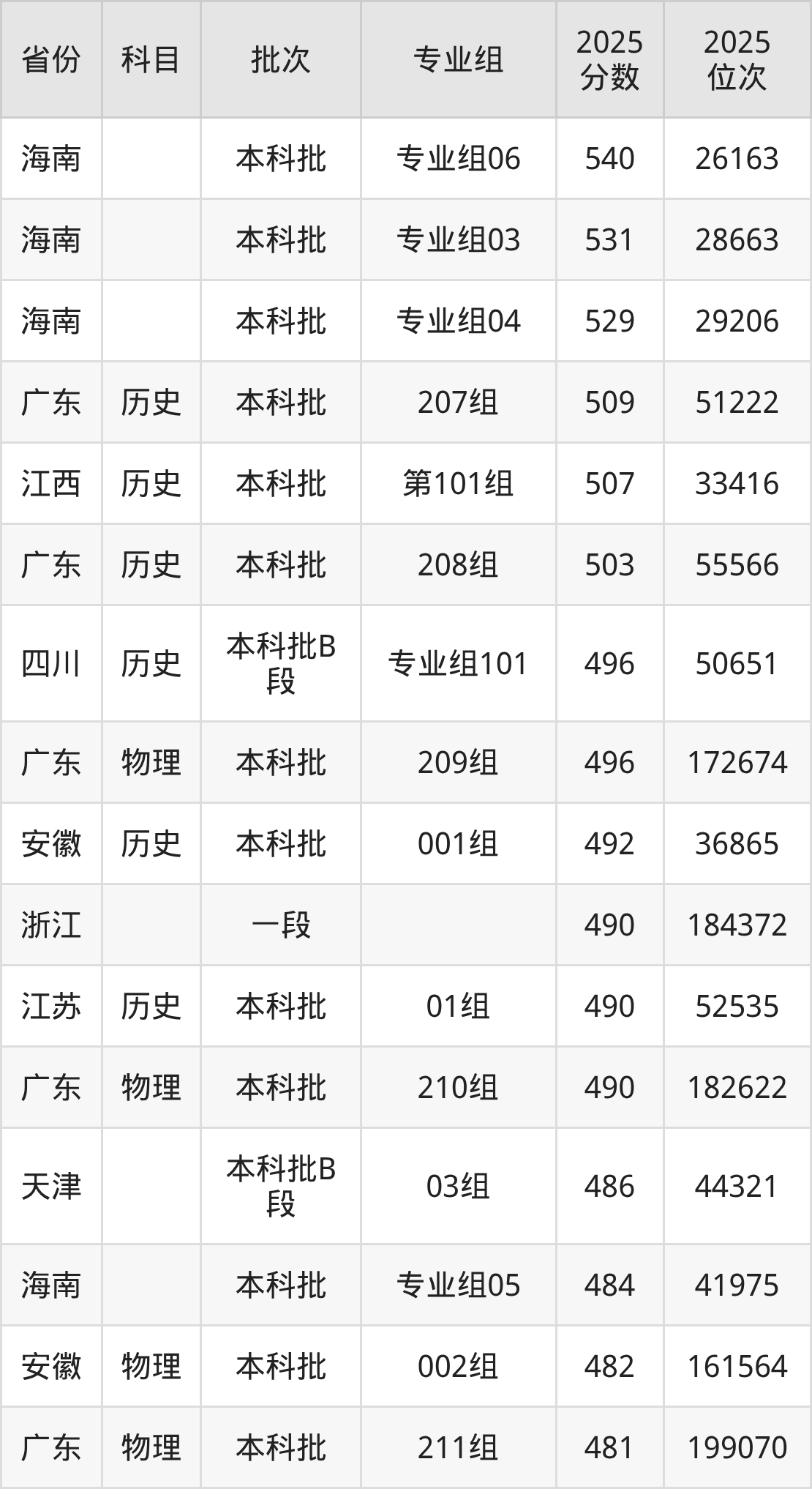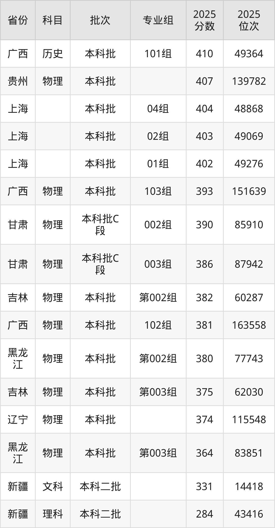下面是2025年滇池学院在全国各省录取最低分数据及位次,各位考生也可作为一个参考。