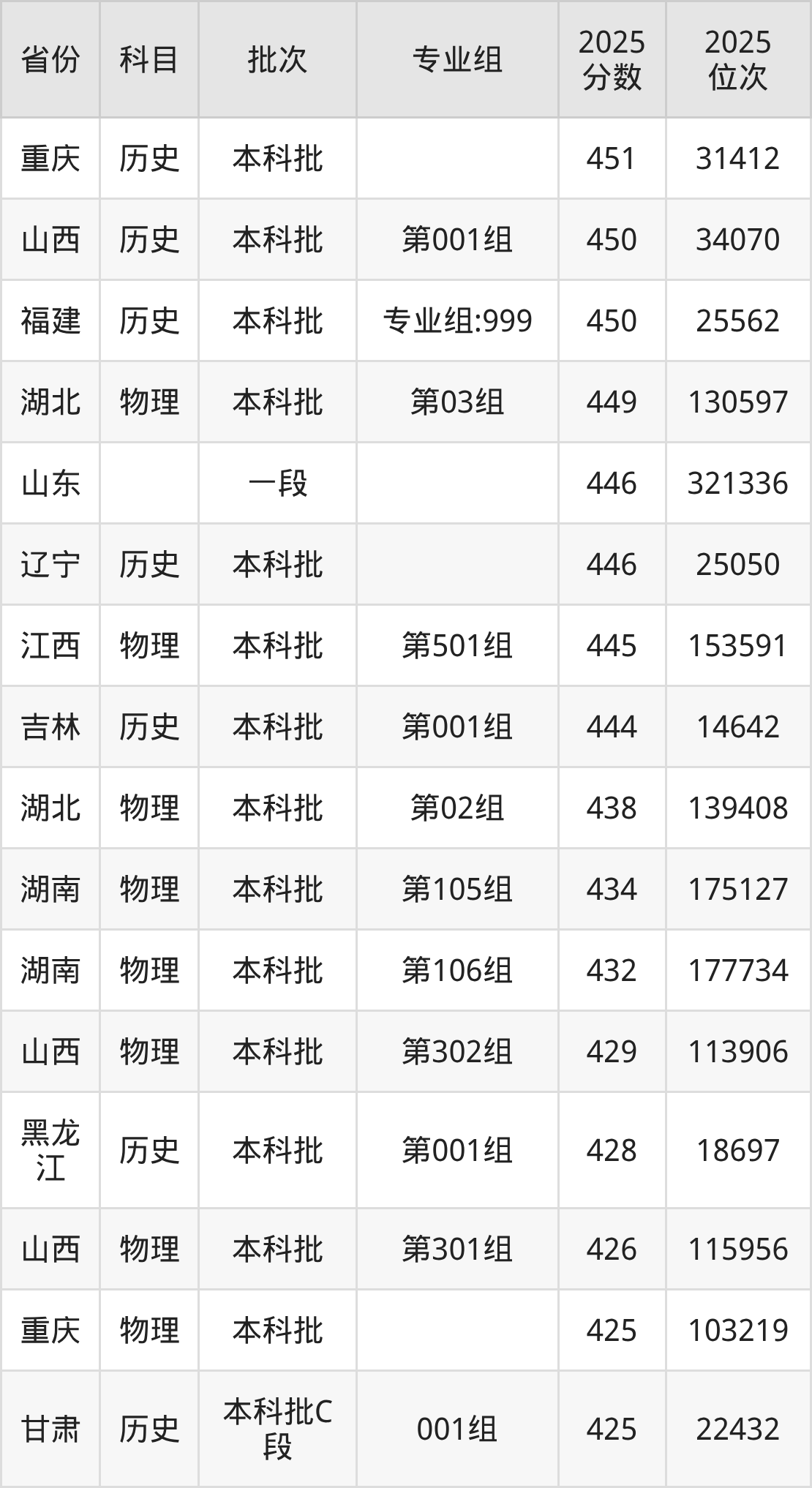 参考2025年山东省高考招录数据,按照分数线从高到低依次为大家展示滇池学院各个专业录取分数线。