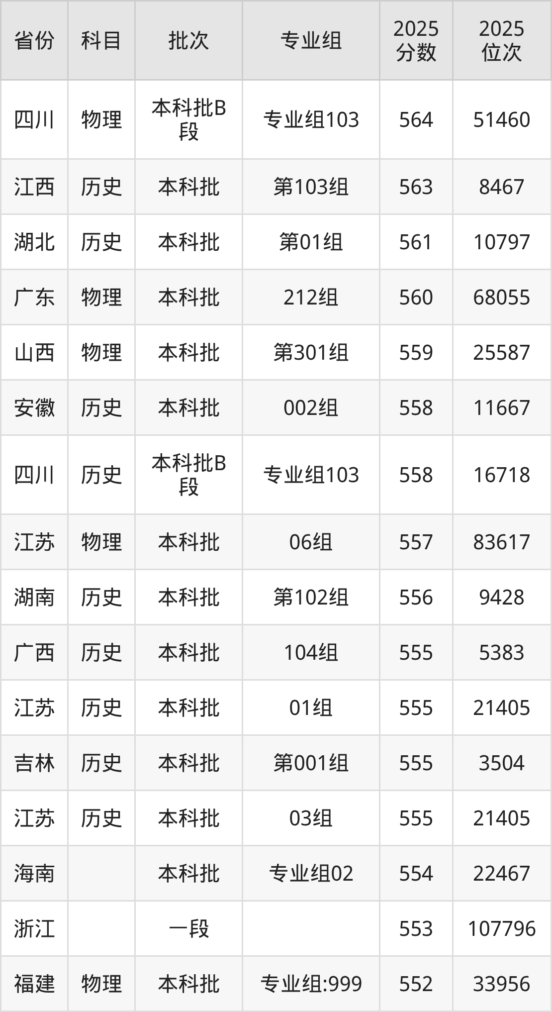 三、江西中医药大学2025年录取分数线