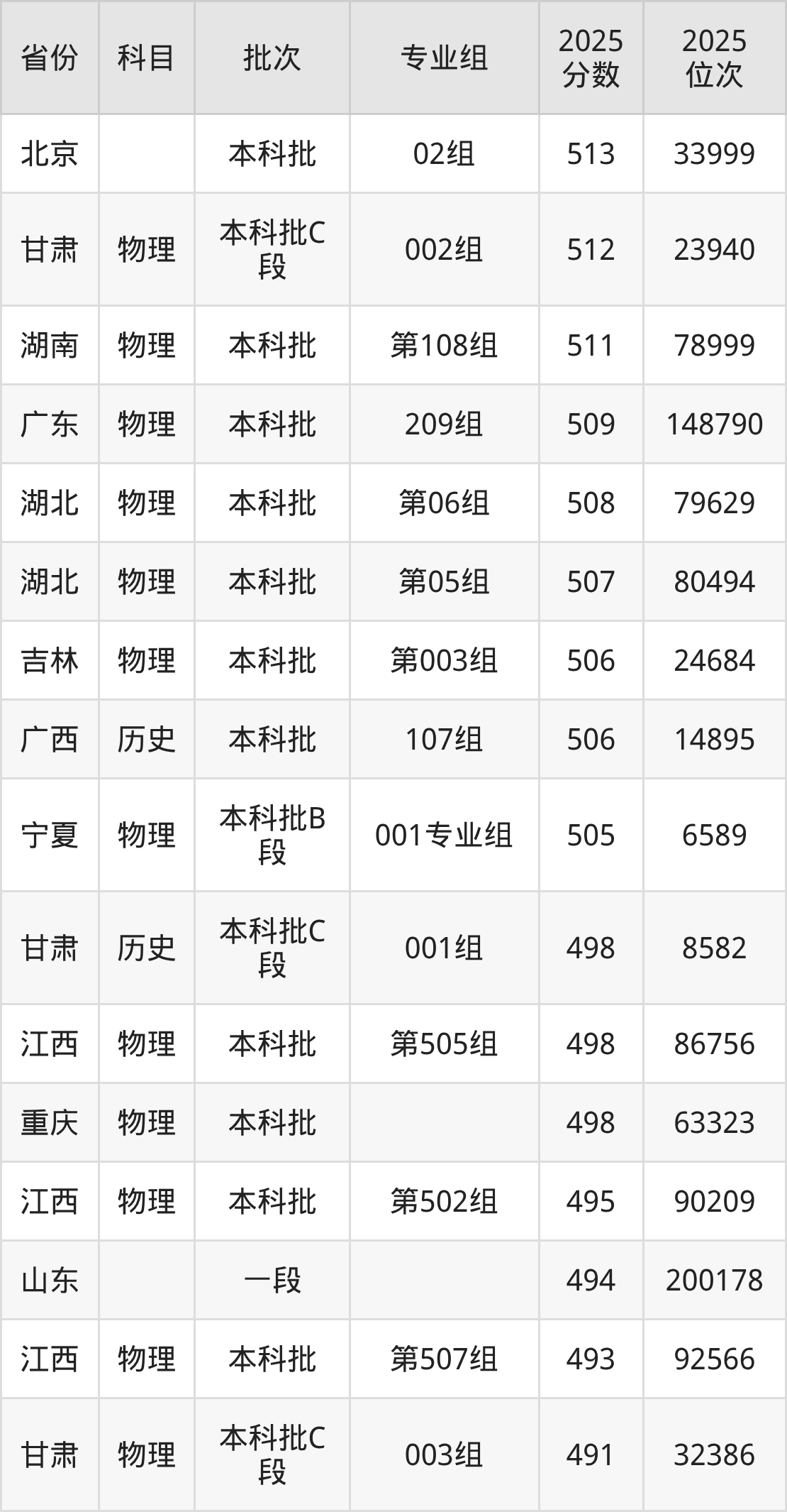 25、预防医学:505分、位次174989名;
