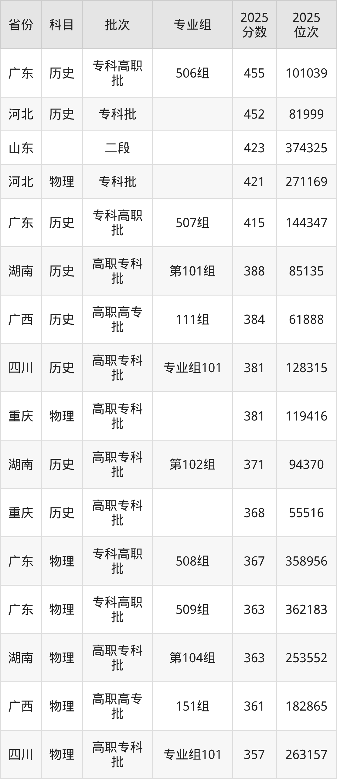 参考2025年山东省高考招录数据,按照分数线从高到低依次为大家展示常德职业技术学院各个专业录取分数线。
