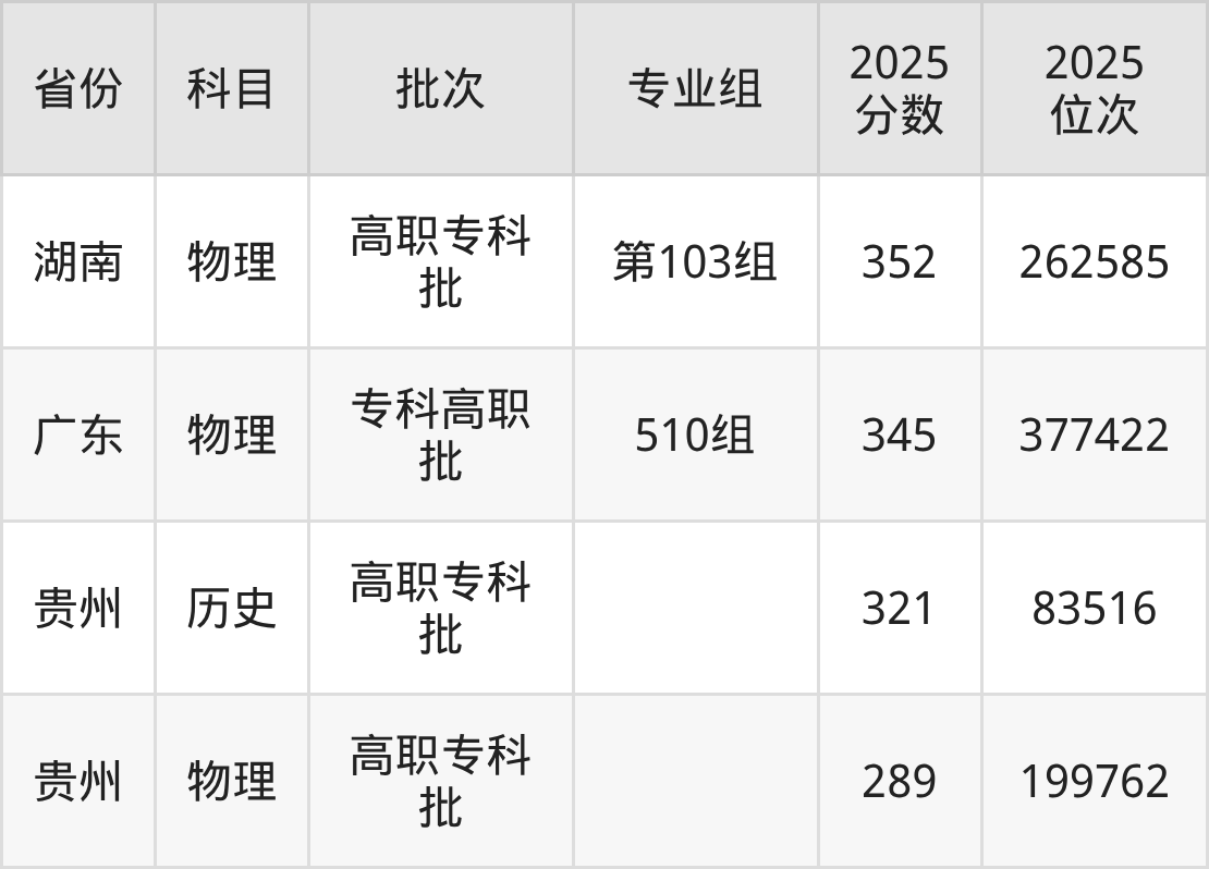 2025年常德职业技术学院全国录取分数线289分到455分,录取最高在广东(506组)、录取最低在贵州(物理)。