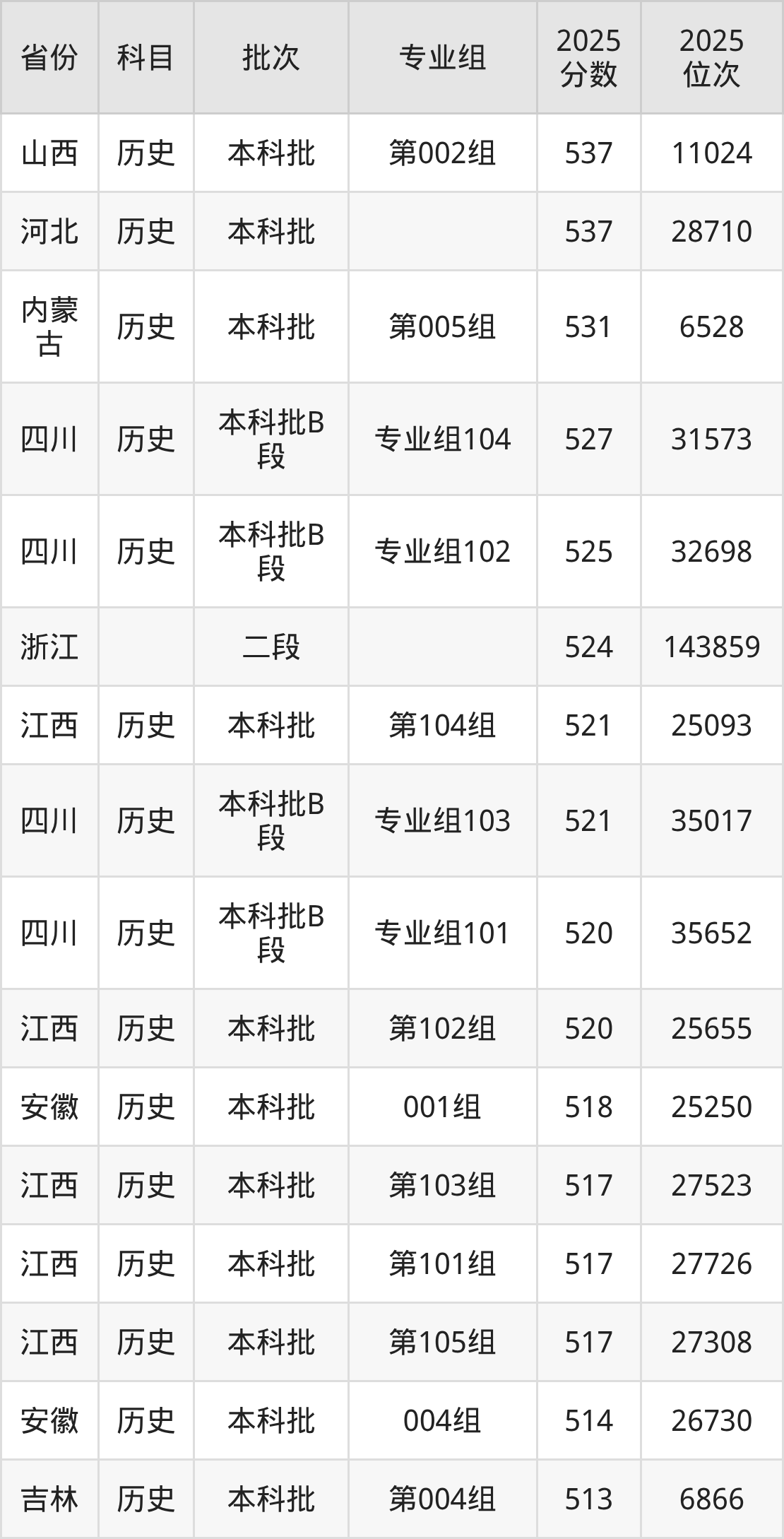 | 汉语言文学 | 历史 | (师范类) |
