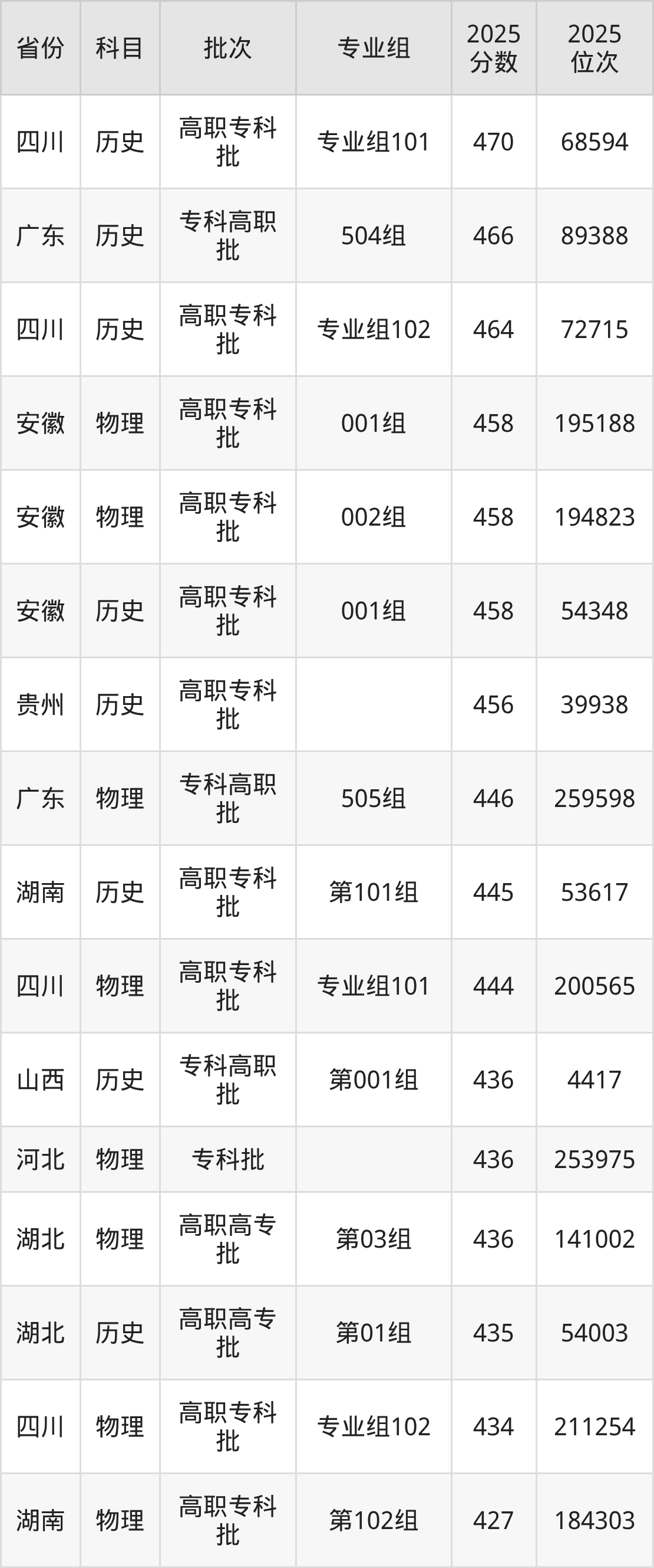 2025年重庆工业职业技术大学全国录取分数线295分到470分,录取最高在四川(专业组101)、录取最低在新疆(理科)。