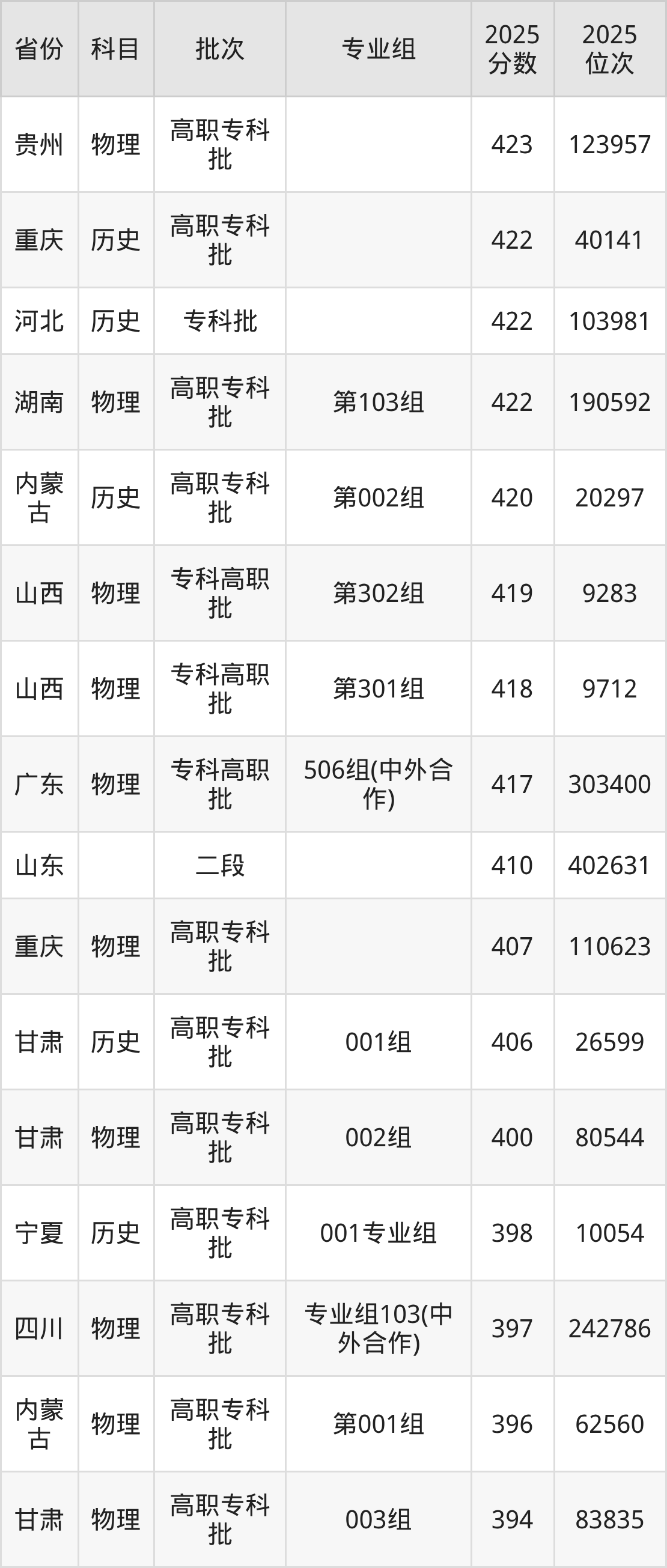 参考2025年山东省高考招录数据,按照分数线从高到低依次为大家展示重庆工业职业技术大学各个专业录取分数线。