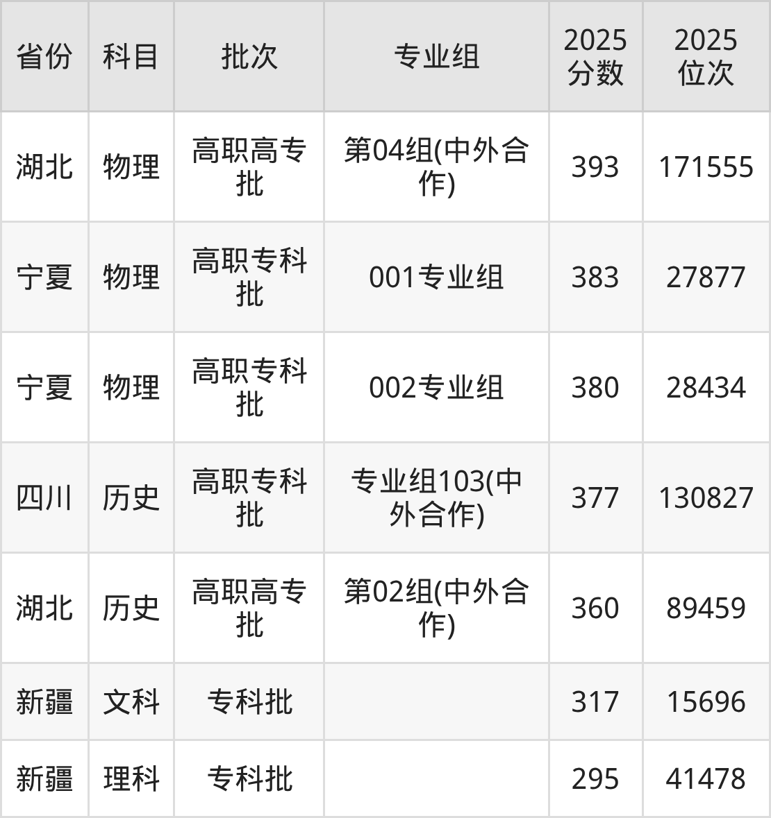 下面是2025年重庆工业职业技术大学在全国各省录取最低分数据及位次,各位考生也可作为一个参考。