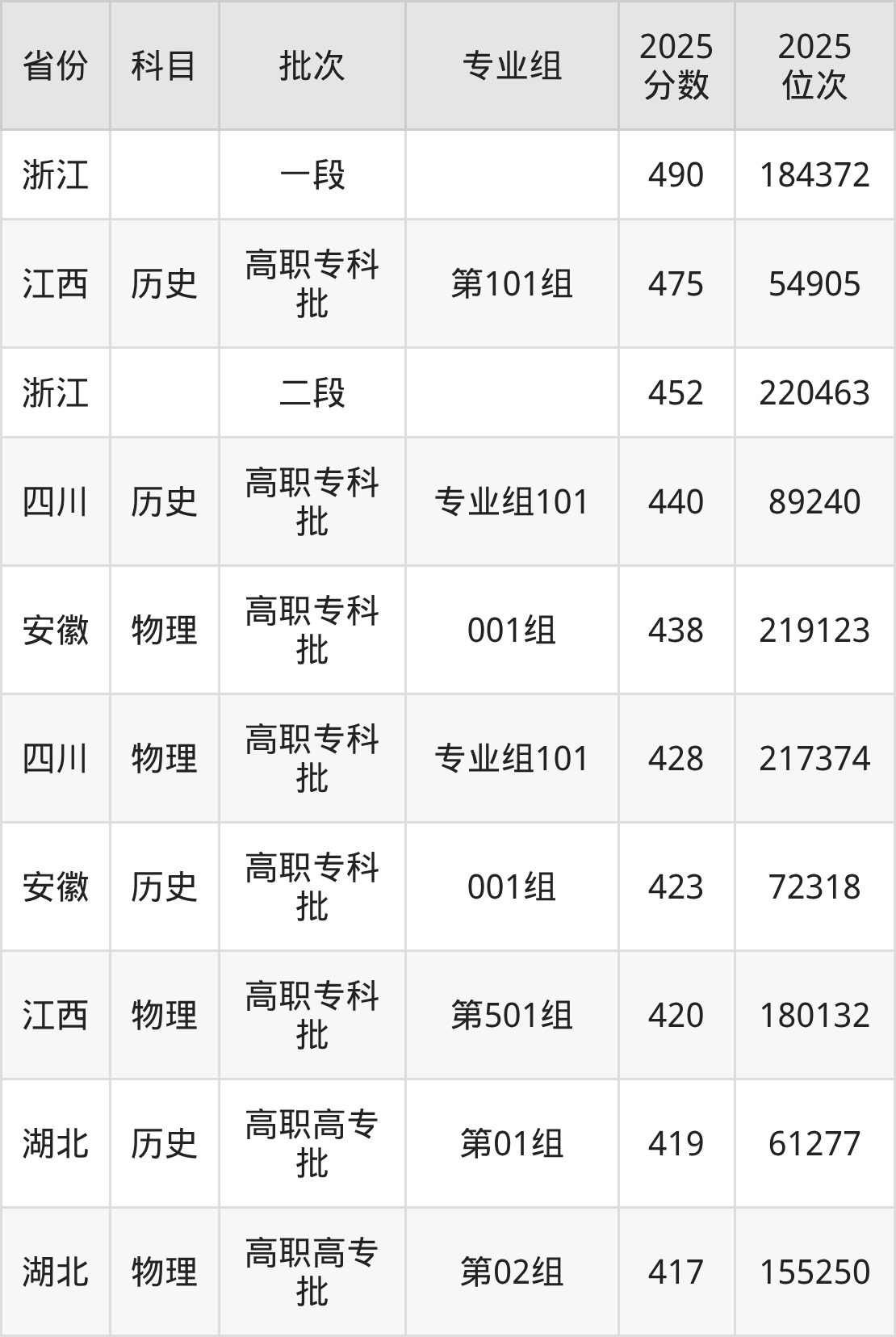 下面是2025年义乌工商职业技术学院在全国各省录取最低分数据及位次,各位考生也可作为一个参考。