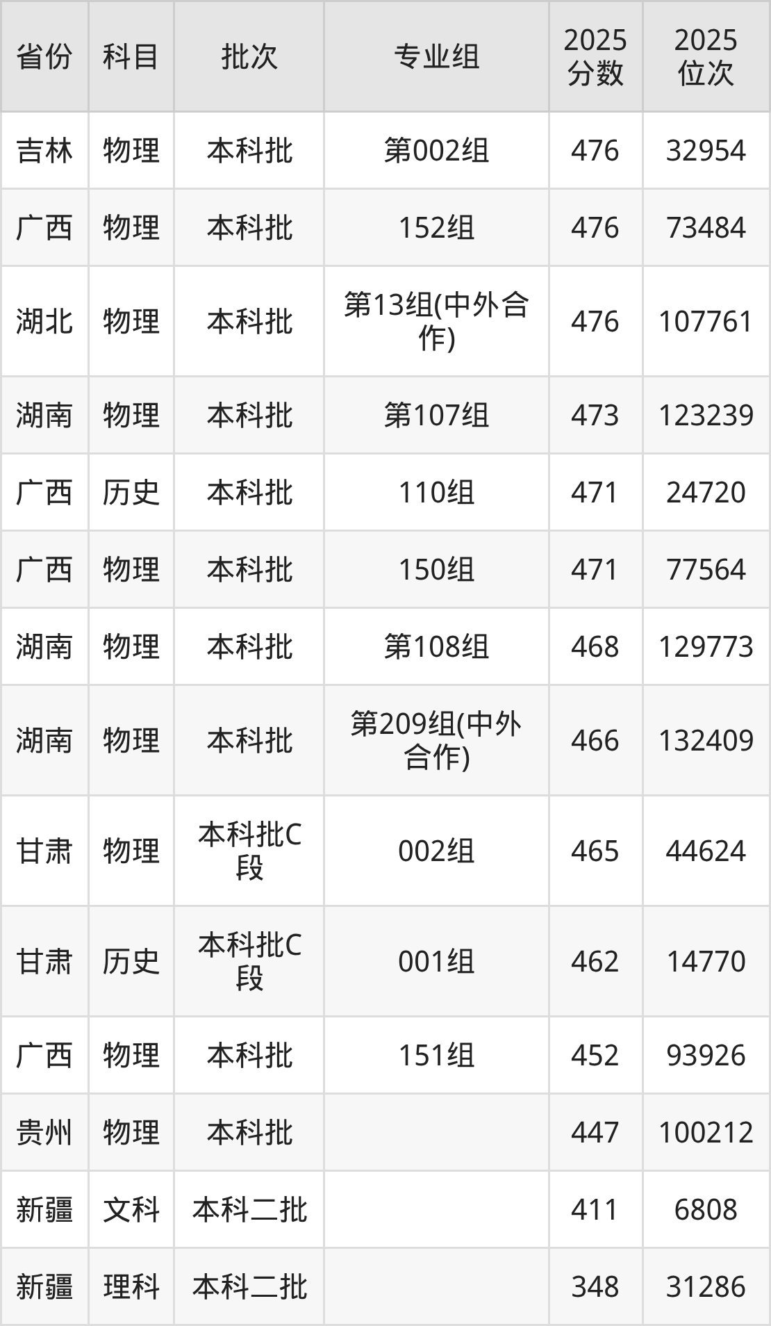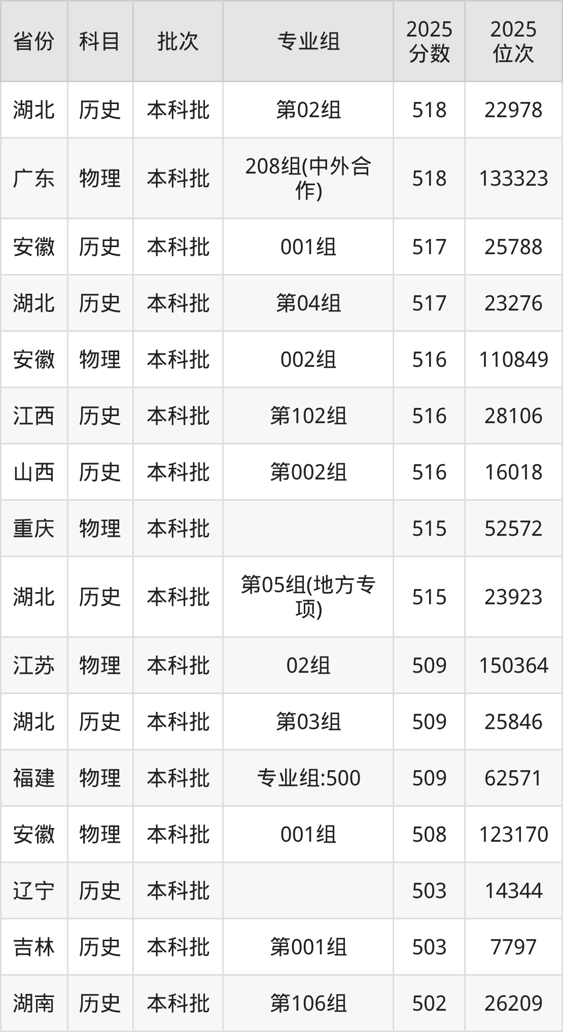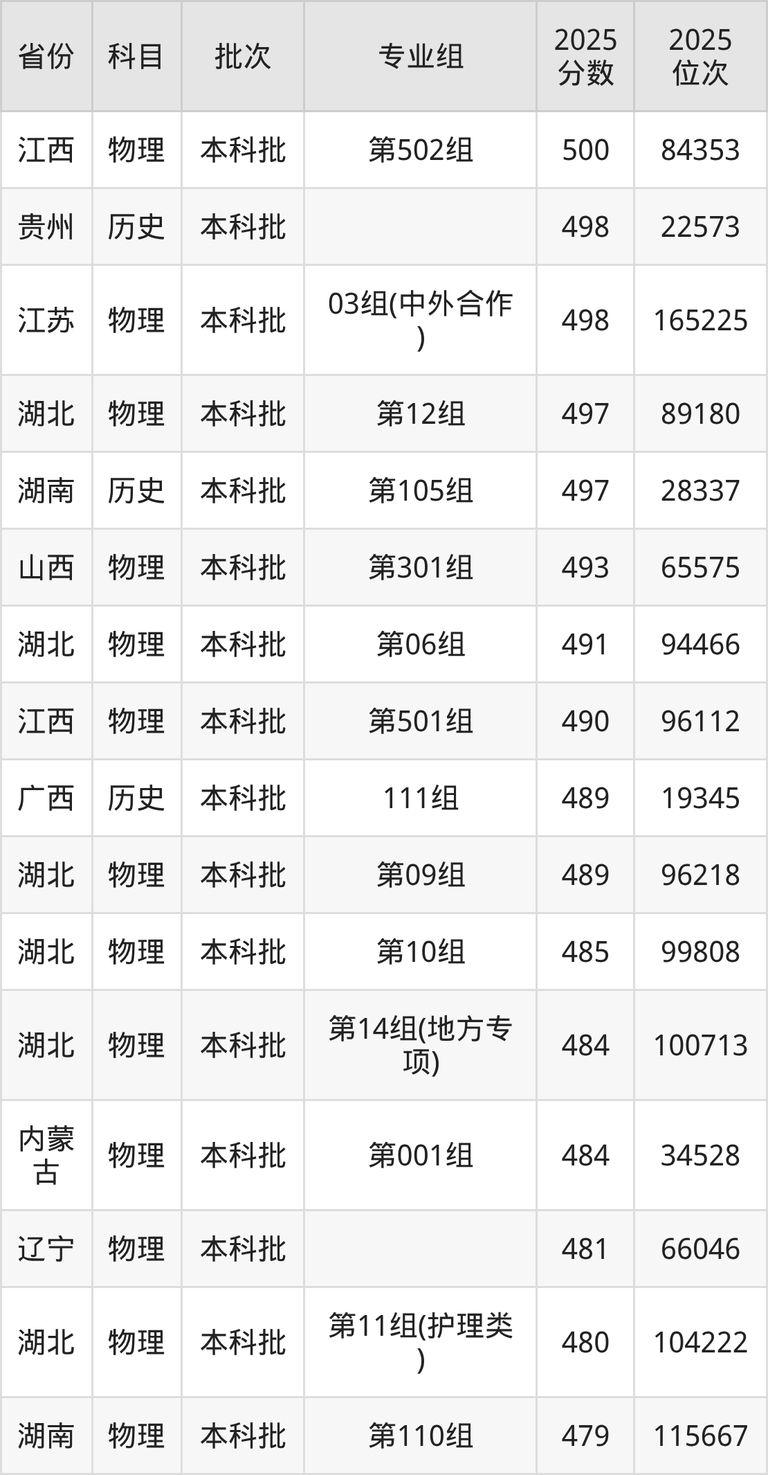 下面是2025年湖北科技学院在全国各省录取最低分数据及位次,各位考生也可作为一个参考。