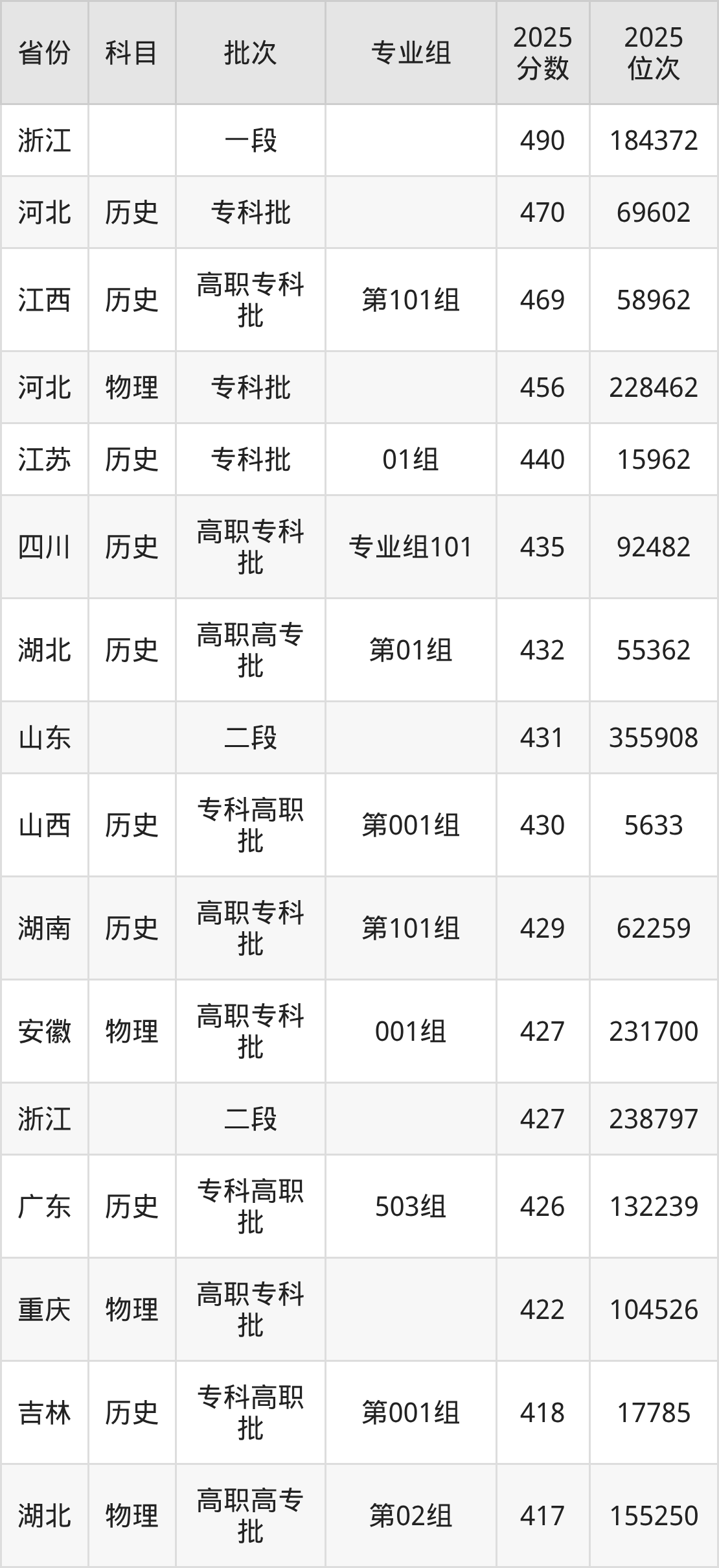 参考2025年山东省高考招录数据,按照分数线从高到低依次为大家展示天津现代职业技术学院各个专业录取分数线。