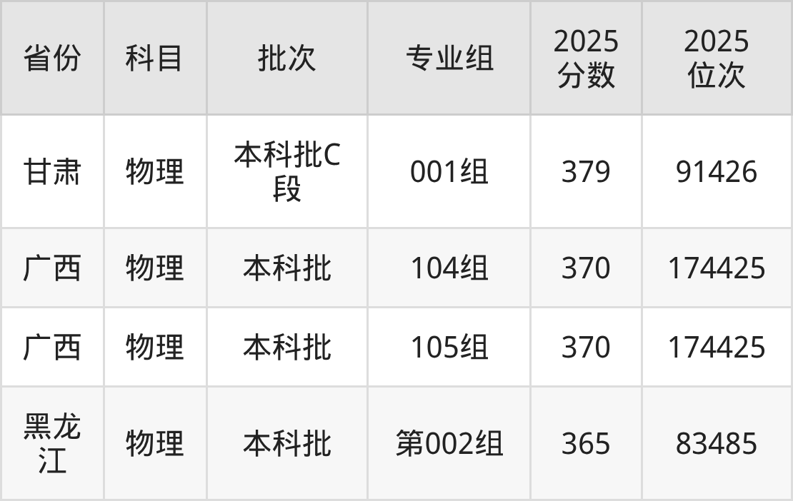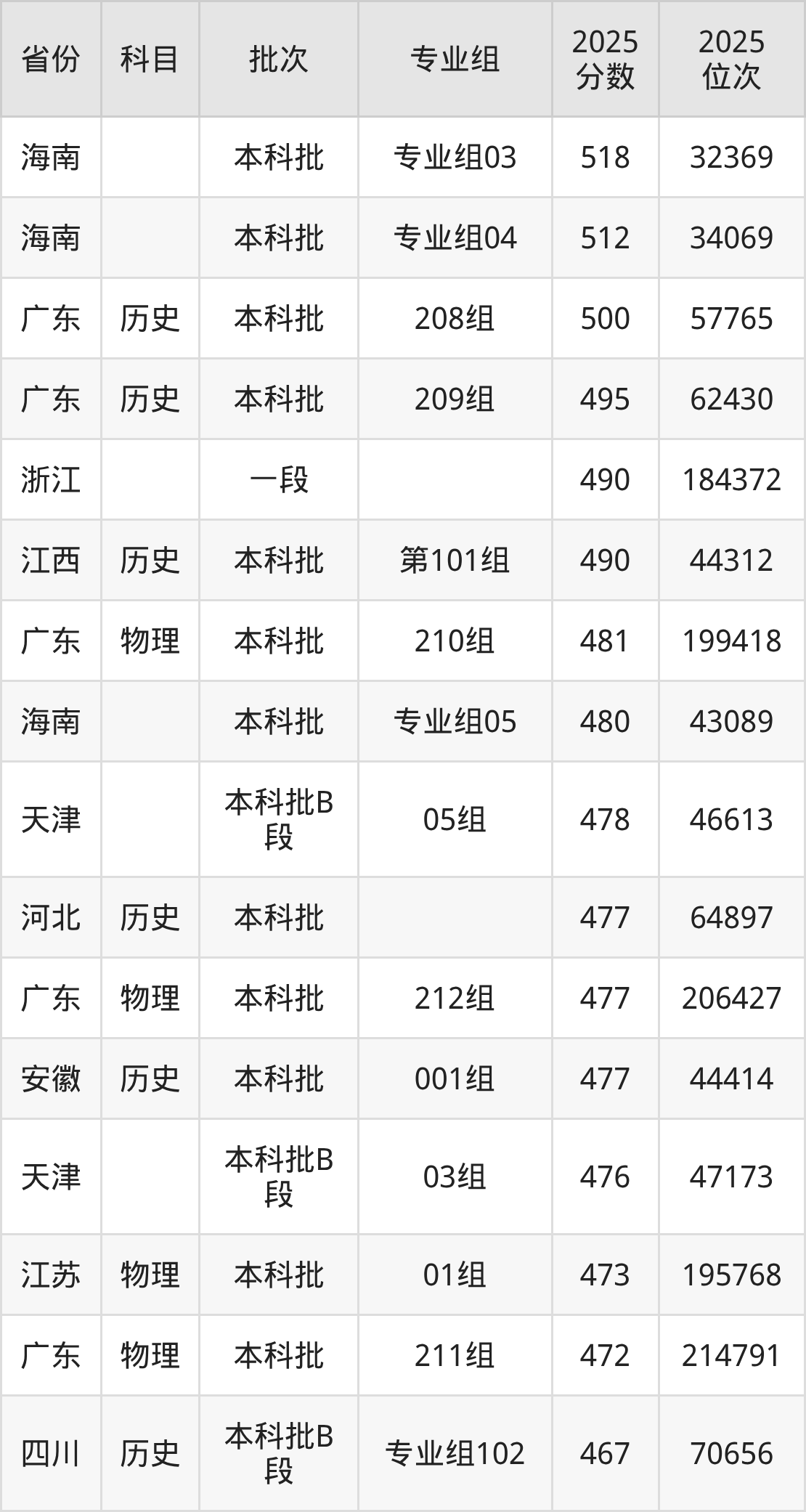 2025年桂林信息科技学院全国录取分数线365分到518分,录取最高在海南(专业组03)、录取最低在黑龙江(第002组)。